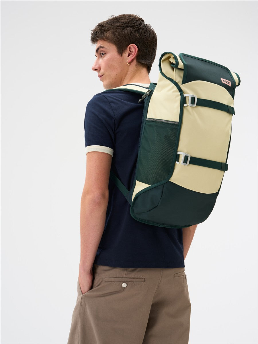 Der Trip Pack von AEVOR ist ein vielseitiger Rucksack für Alltag, Reise und Pendelstrecken. Dank des praktischen Rolltops mit Klettverschluss lässt sich das Volumen flexibel von 26 auf 33 Liter erweitern und passt sich damit unterschiedlichen Anforderungen an.