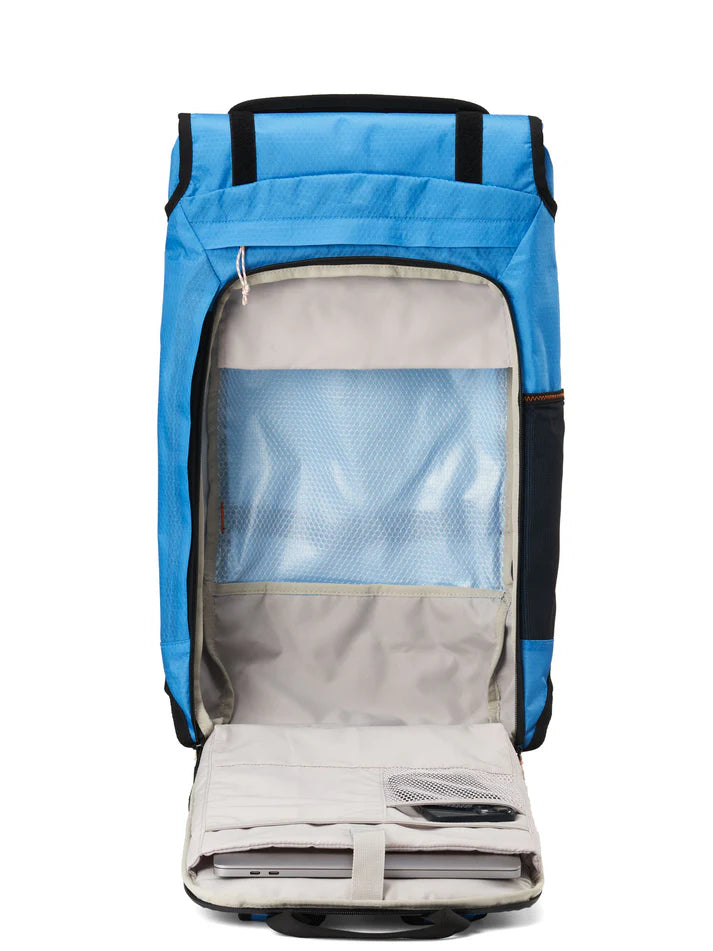 Der AEVOR Trip Pack Proof bietet 26–33 l Volumen dank Rolltop mit Klettverschluss und Rückenzugang per Rundum-Reißverschluss. Mit 800 g Gewicht, ergonomischen Schultergurten und atmungsaktivem Rückenteil sitzt er bequem im Alltag und auf Reisen. Ein 15″ Laptopfach, Netz-Seitenfach für Trinkflaschen und abnehmbarer Brustgurt sorgen für Funktionalität. Das Außenmaterial aus 100 % recyceltem PET, PFC-frei imprägniert und bluesign®-zertifiziert, ist stark wasserabweisend mit 13.000 mm Wassersäule.