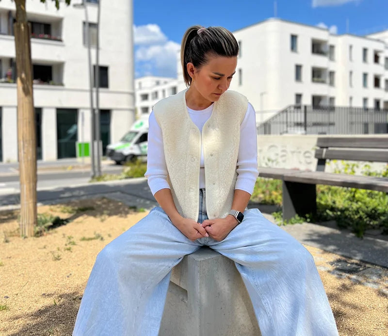 Mit der Weste "TYB" erhältst du ein leichtes, modisches Kleidungsstück, das natürlichen Tragekomfort und stilvolle Wärme vereint – ideal für kühle Tage.