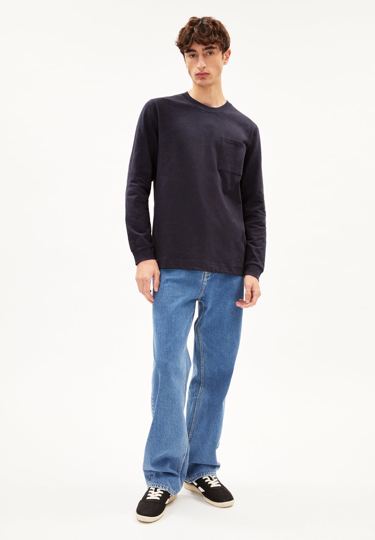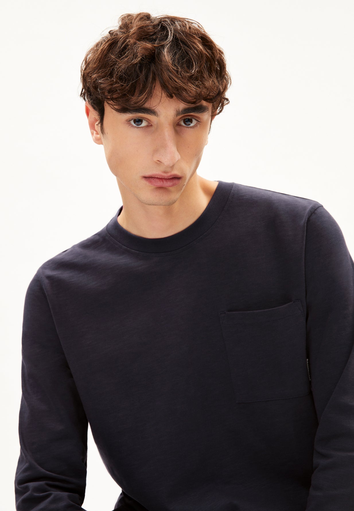 Baazo Flamé von Armedangels hat einen Relaxed Fit, einen Rundhalsausschnitt, abgesetzte Bündchen und eine aufgesetzte Tasche auf Brusthöhe. Das Longsleeve wurde aus 100% Baumwolle (bio) gefertigt.