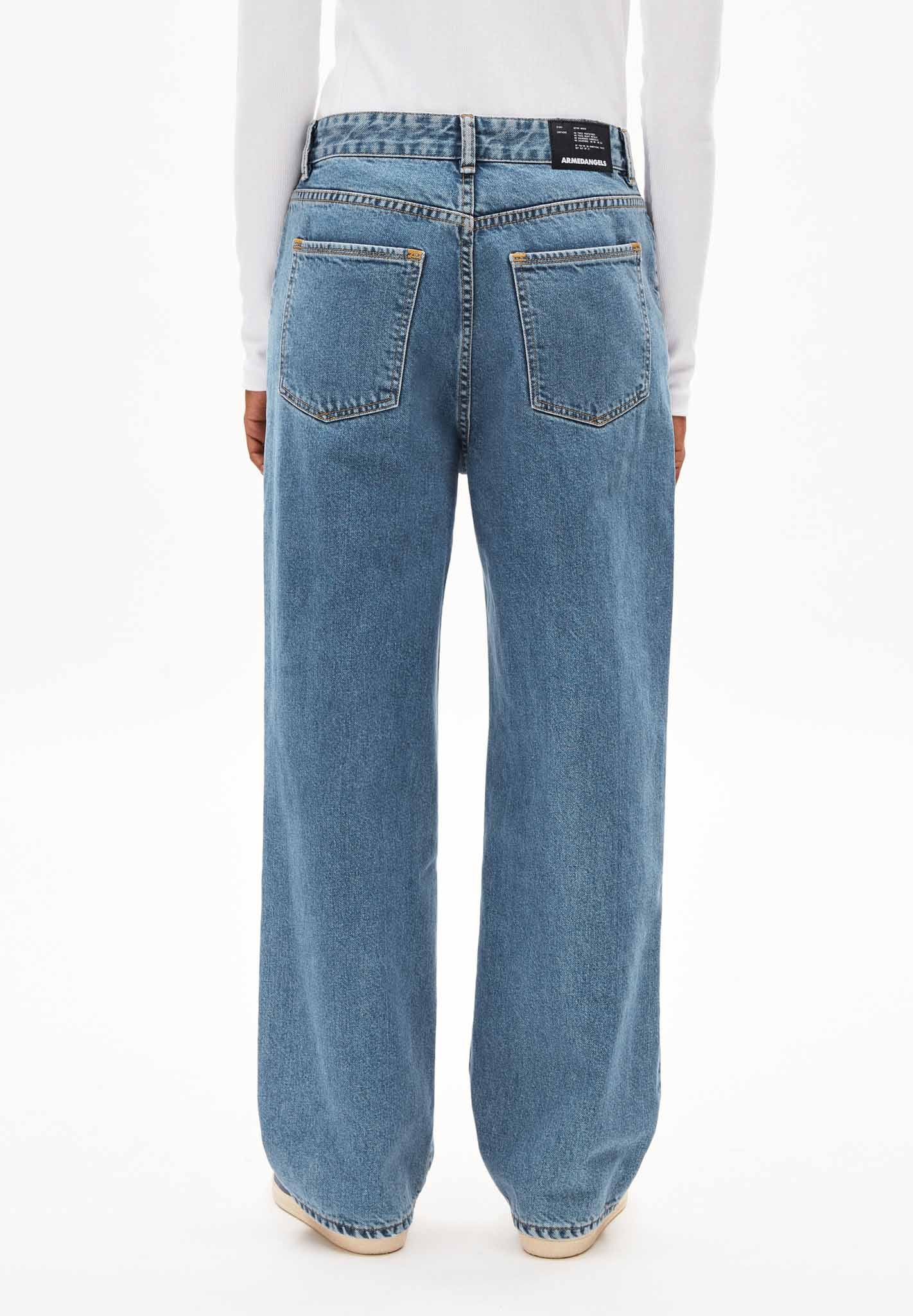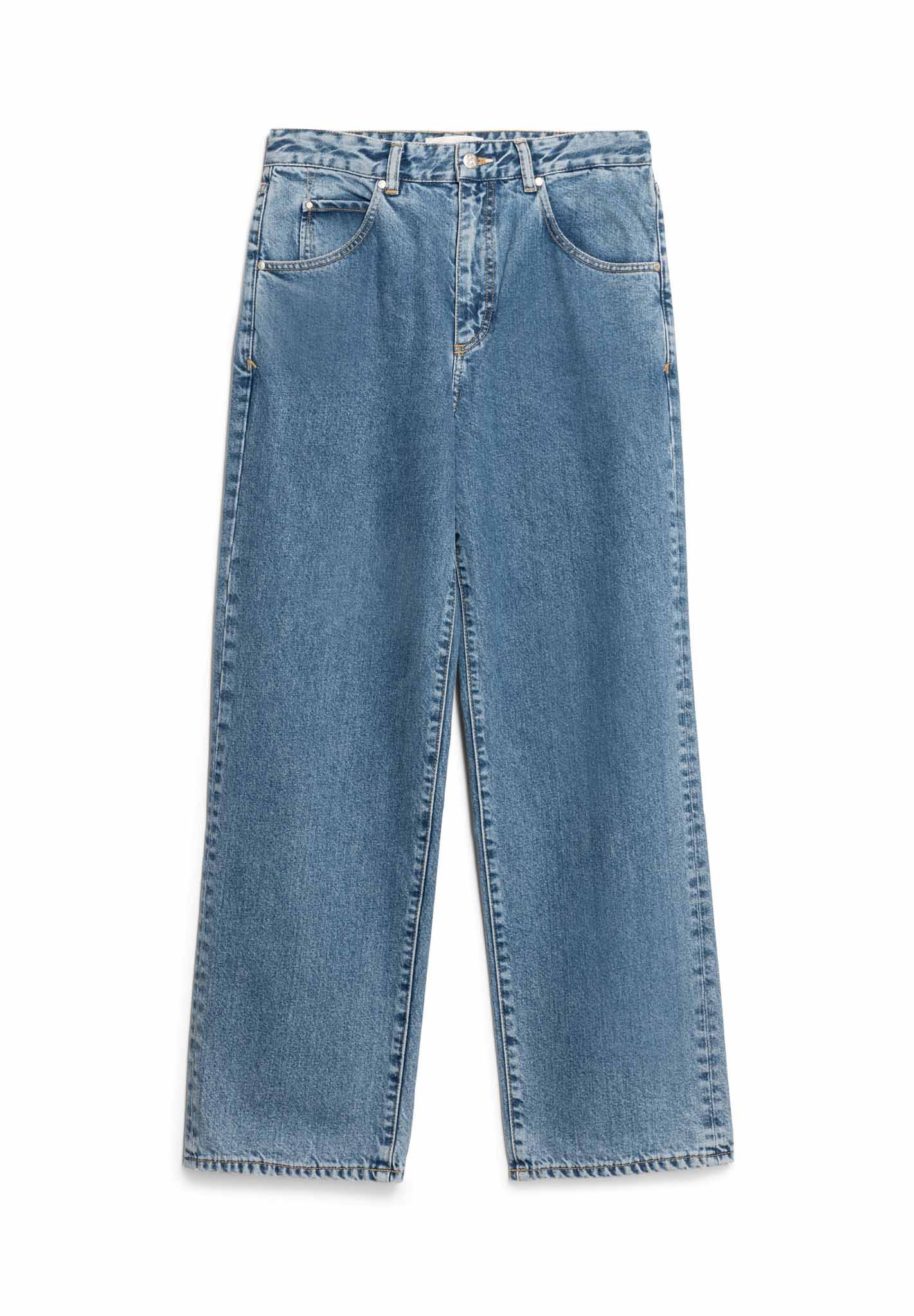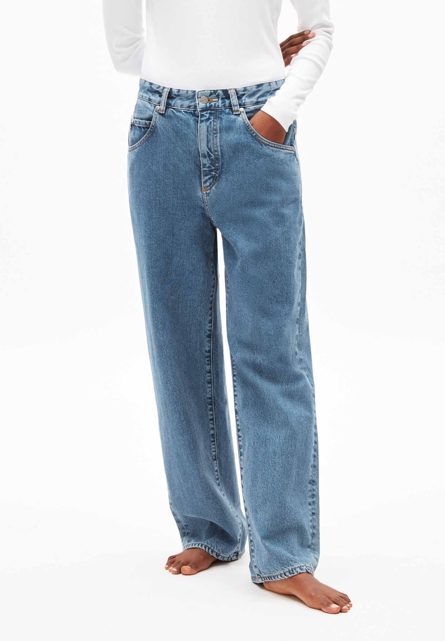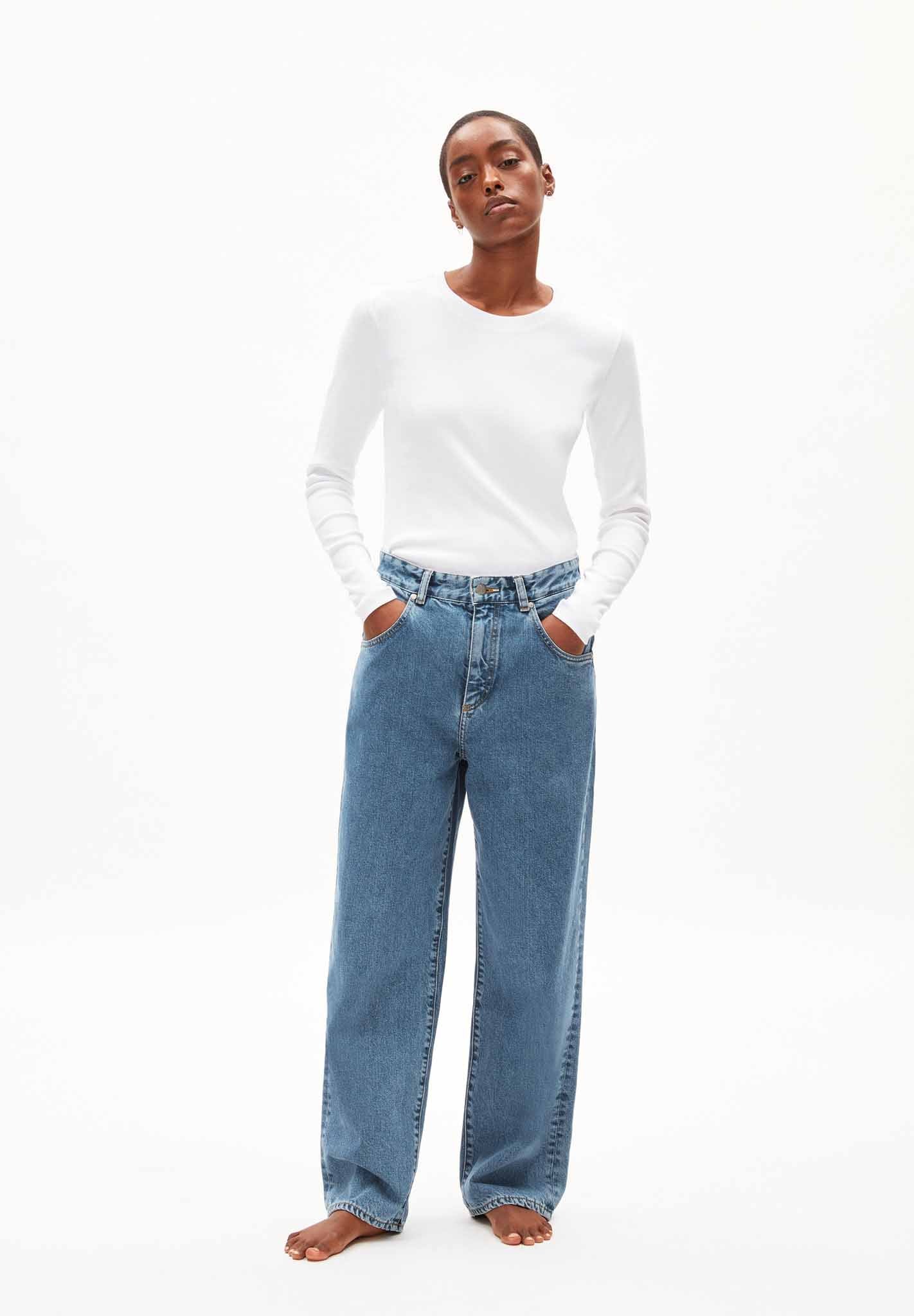Die Baggy Jeans HAAYI von Armedangels sitzt locker auf der Hüfte und überzeugt mit ihrem weiten Bein für einen entspannten und modernen Jeans-Look. Die klassische Knopfleiste und der praktische Reißverschluss ergänzen das Design ideal. Gefertigt aus 100 % recycelter Baumwolle, bietet die Jeans dank des festen, stretchfreien Materials ein besonders bequemes Tragegefühl. Der schwere Denim sorgt für hohe Formstabilität und eine authentische Optik. Die Innenbeinlänge variiert je nach Größe zwischen 66 cm (Größe 28) und 81 cm (Größe 34). Für die Pflege empfehlen wir einen Schonwaschgang bei 30 °C und Lufttrocknung. Chemische Reinigung und Bleichen sind nicht geeignet, Bügeln ist bei mittlerer Hitze möglich. Mit der HAAYI Jeans erhältst du ein nachhaltiges Denim-Basic, das Stil, Komfort und eine bewusste Materialwahl perfekt vereint.