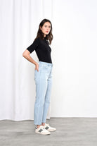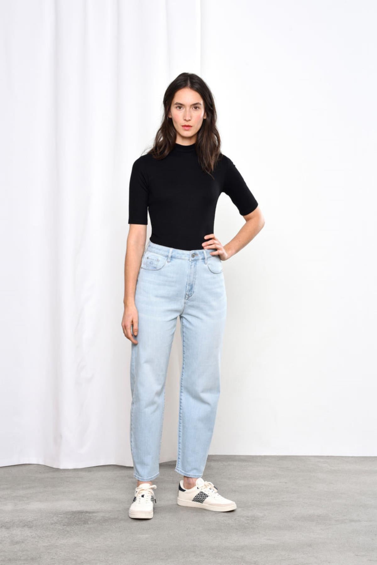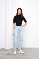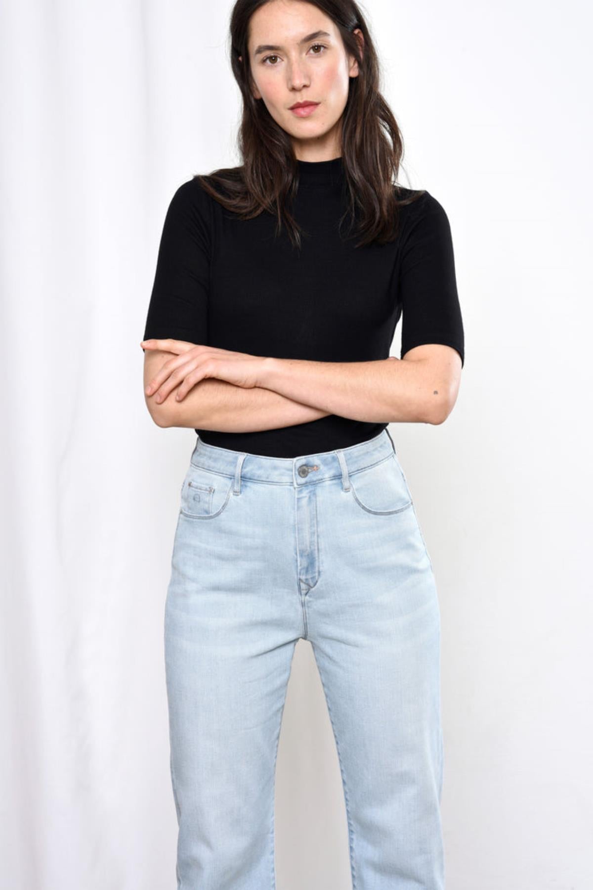 Die Jeans ist eine der Bestseller von Dawn, denn sie ist super bequem und hat einen modernen, stylischen Schnitt. Die Hose sitzt hoch in der Taille, fällt locker und leger über die Oberschenkel und läuft zum Saum hin wieder etwas zusammen (O-Shape). Die Jeans ist cropped und besteht zu 92% aus Bio-Baumwolle.