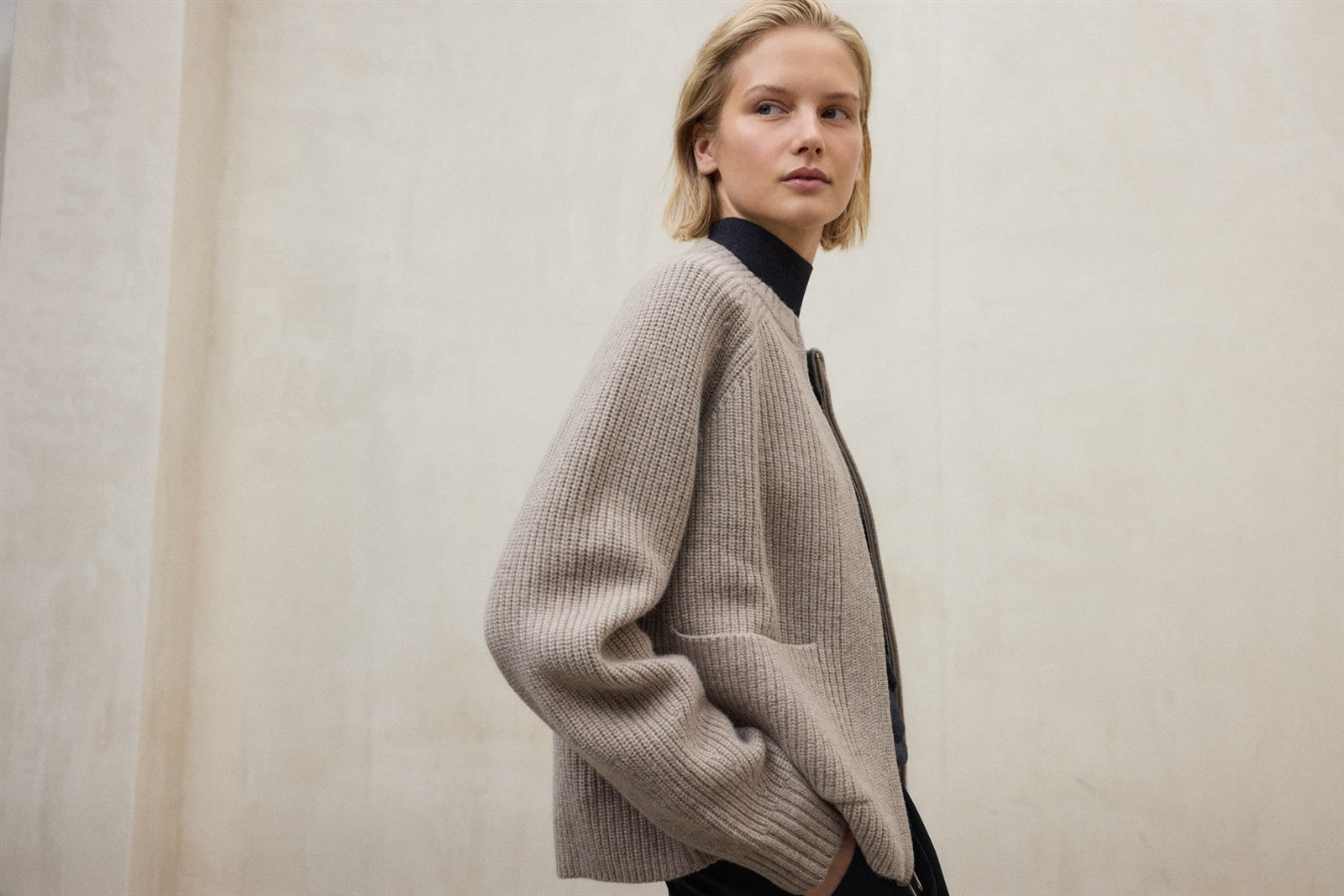 Strickpullover Lilium von ECOALF in toast melange, hergestellt aus 100% recycelter Wolle .