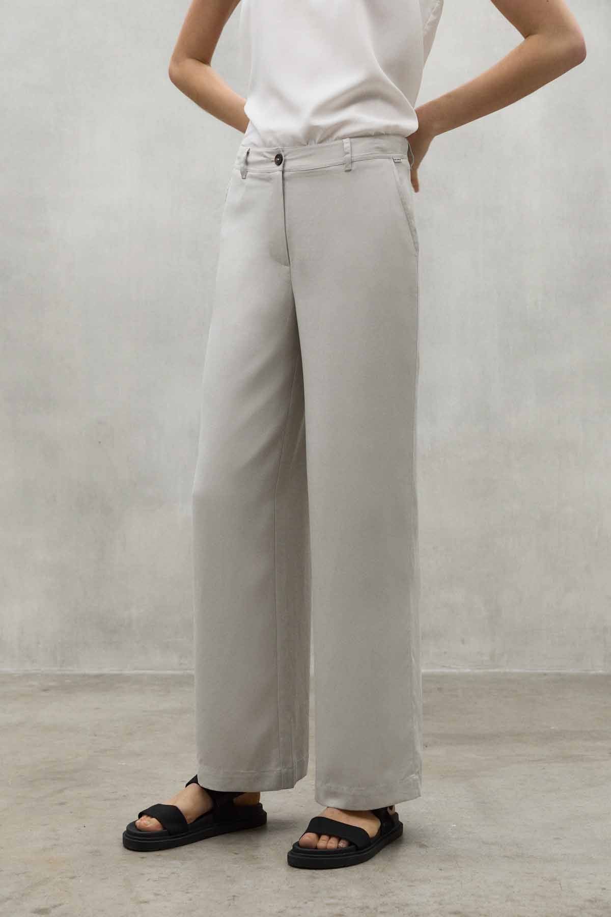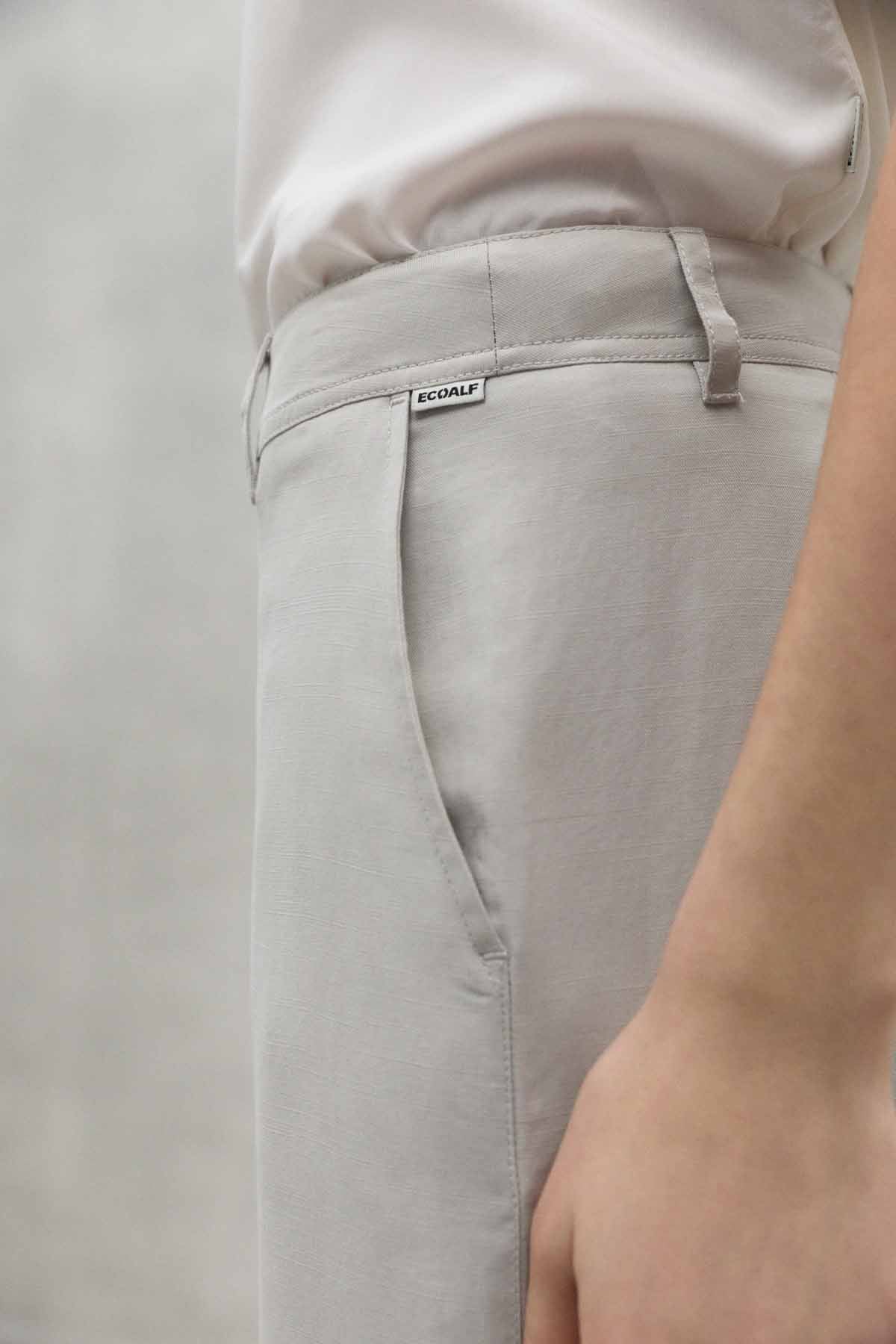 Die Hose Sabinealf von Ecoalf ist normal geschnitten. Sie hat eine hohe Taille, ein langes Bein und wird mit Knopf und Reißverschluss geschlossen. Die Stoffhose hat seitliche Taschen. Sie besteht aus 97% Lyocell (TENCEL ™) und 3% Leinen.