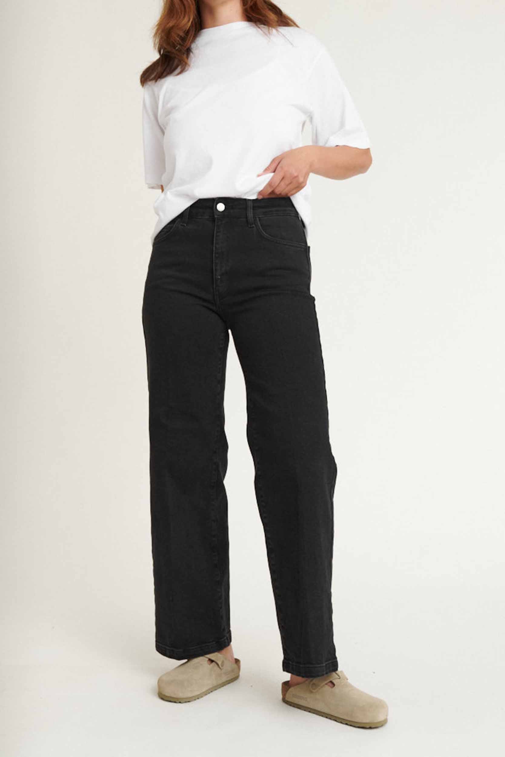 Die Enya Black Jeans hat weite, gerade Beine und eine normale Taille.