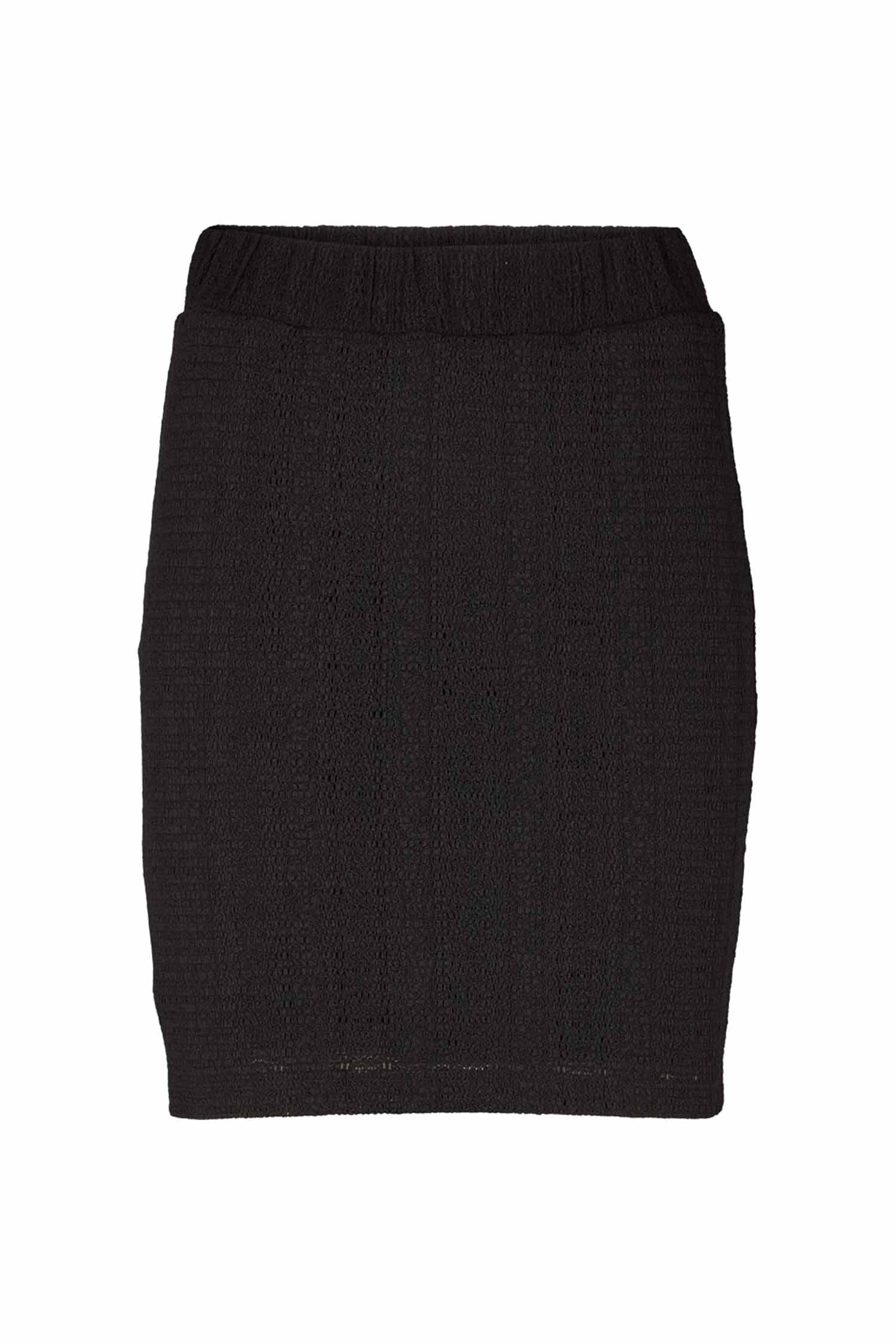 Suvi Skirt von Basic Apparel ist schmal geschnitten, hat einen elastischen Bund und Spitzenmuster. Der Rock wurde aus 95% Polyester (recycelt) und 5% Elasthan gefertigt.