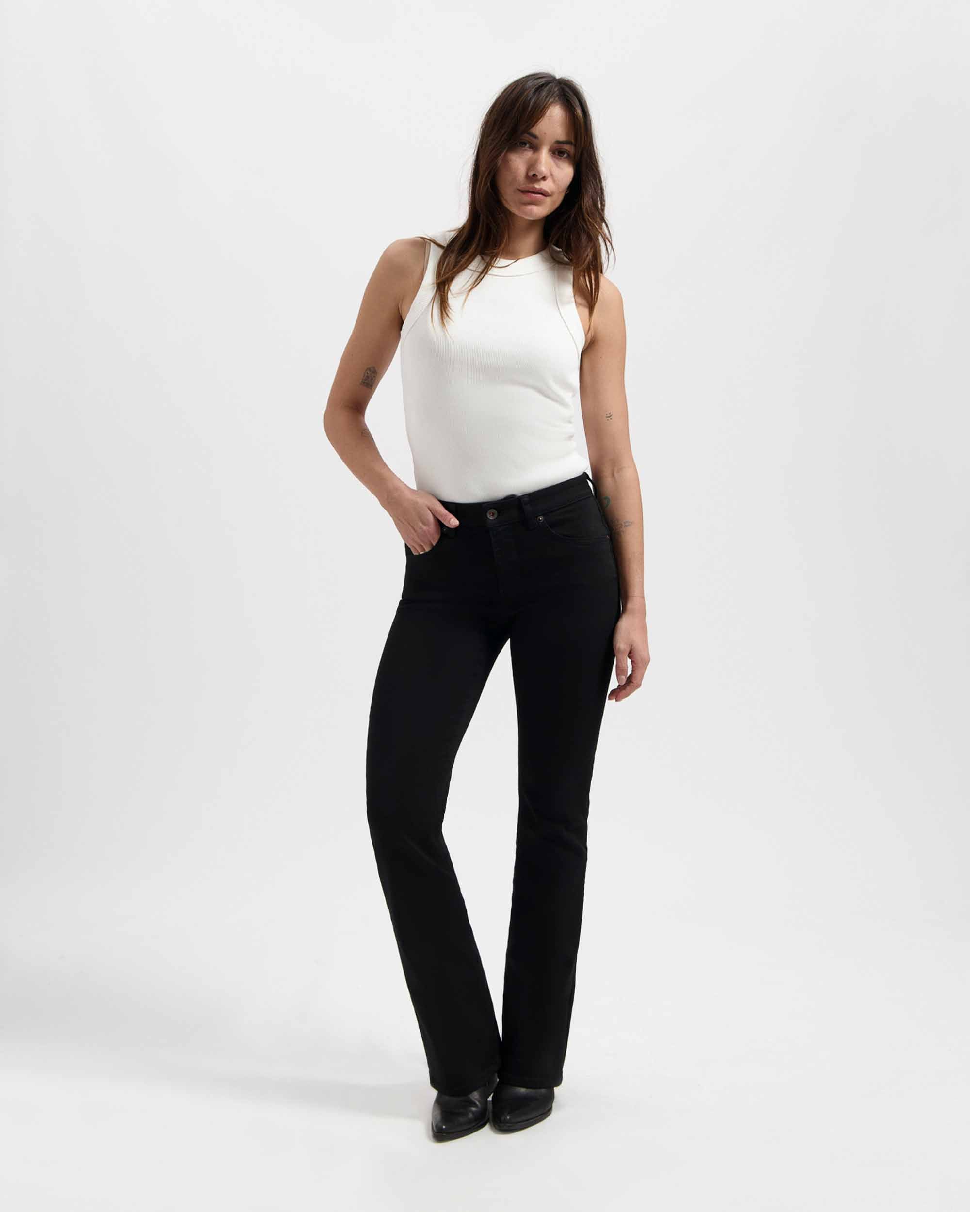 Highwaist und figurbetont ist Jeans Carey von Kuyichi geschnitten. Die Hight Waist Jeans macht eine tolle Figur und ist aufgrund der Faserzusammensetzung bequem und komfortabel. Die Hose besteht aus 93% Modal (TENCEL™), 5% Polyester und 2% Elasthan. Auch das Patch ist vegan.