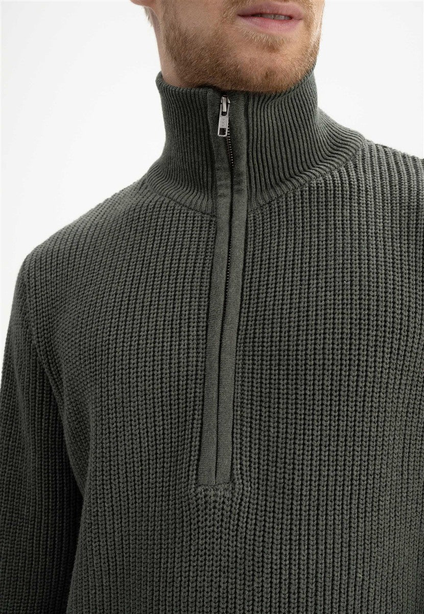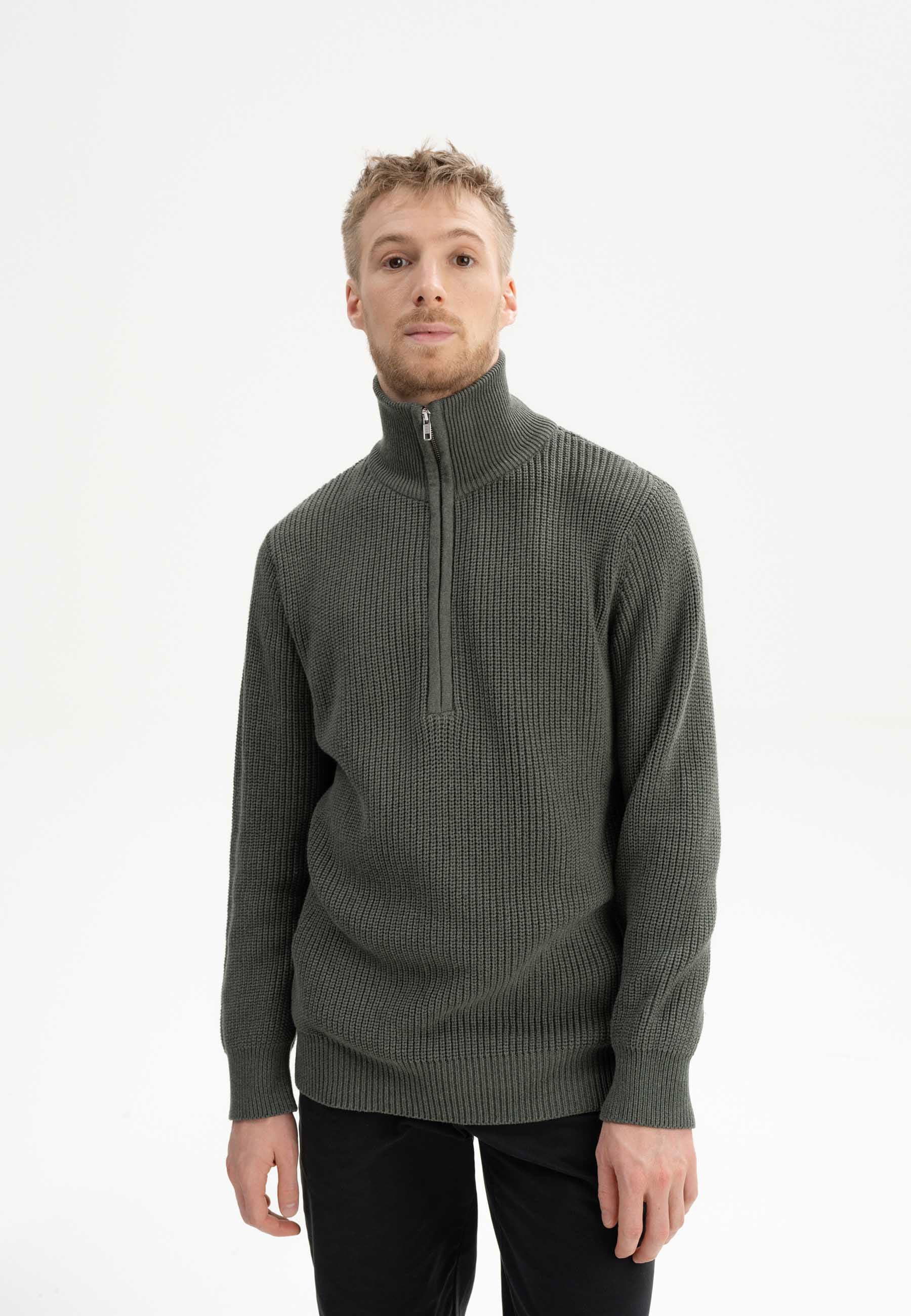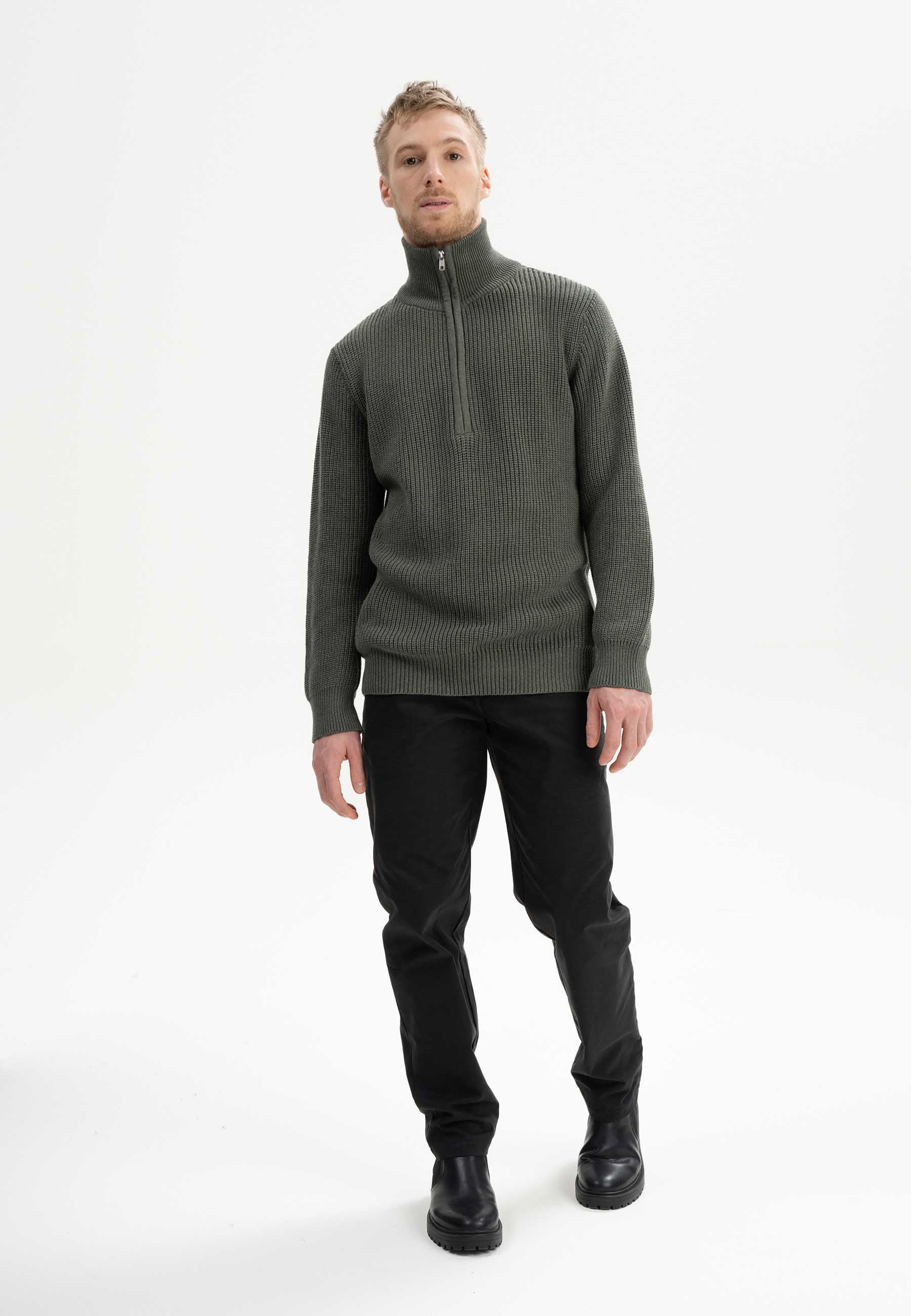 MELAWEAR Rippstrick Stehkragenpullover Analah green clay