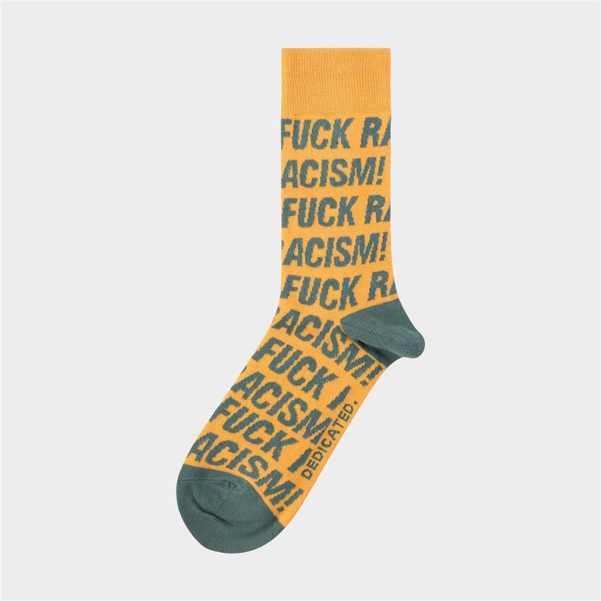 DEDICATED Socks Sigtuna Fuck Racism Pattern Honey Yellow
