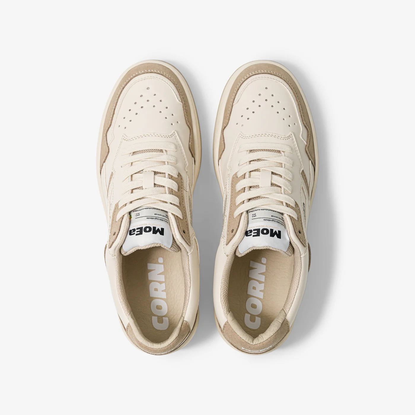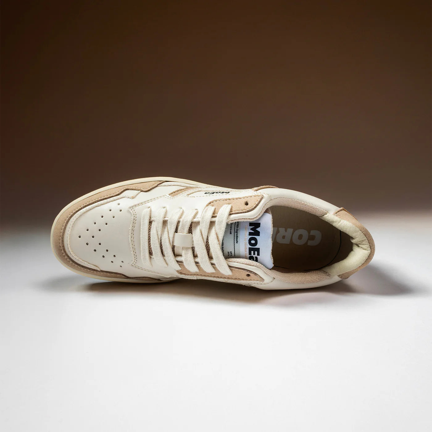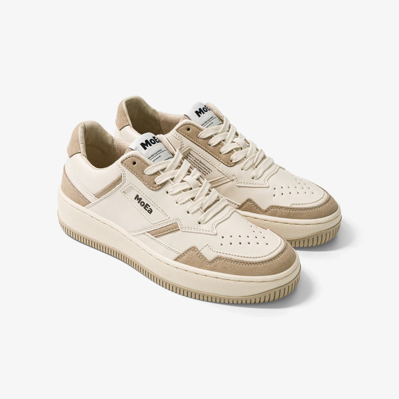 Der Sneaker Gen1 All In pastel von MOEA ist vegan und wurde unter fairen Bedingungen in Portugal hergestellt. Weitere Detials: • Obermaterial: - Weiß: 46 % Mais-Bio-PU + 32 % Baumwolle + 22 % PU - Blau: 42 % Mais-Bio-PU + 31 % PU + 27 % recyceltes PL - Pink: 74 % Mais-Bio-PU + 24 % Viskose + 2 % PU - Grün: Beschichtung: 65 % Bio-PU + 35 % Kaktus // Rückseite: 55 % PL + 45 % Baumwolle - Lila: 40 % PU + 24 % Apfel + 20 % recyceltes PL + 16 % recycelte Baumwolle - Wildleder: 70 % recyceltes PA + 30 % PU - Mesh: 70 % recyceltes PL + 30 % PL • Sohle: 70 % Gummi + 30 % recyceltes Gummi Die Sohle ist stark und an das Obermaterial genäht. • Futter: 100 % recyceltes PL • Schnürsenkel: 55 % Bio-Baumwolle + 45 % recycelte Baumwolle • Etiketten: 62 % recyceltes Polyester + 38 % Polyester Dieses Modell wurde geprüft und zertifiziert: • Peta Approved VEGAN