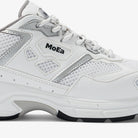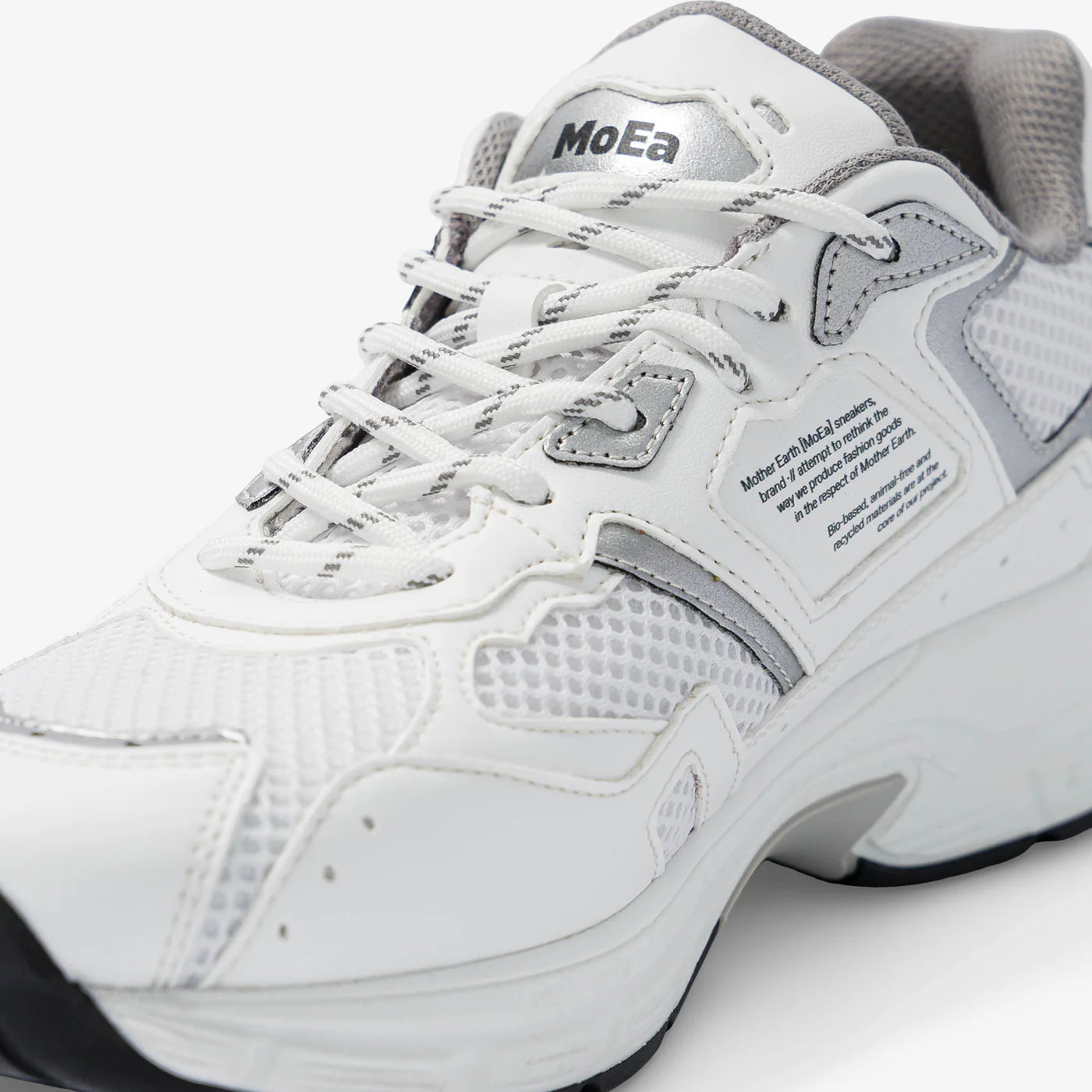 Die Moea GEN8 Sneaker verbinden Retro-Design mit nachhaltiger Innovation. Inspiriert von den Chunky-Sneakern der 90er, kombinieren sie Oversized-Silhouetten und dynamische Overlays mit veganen Materialien. Handgefertigt in Guimarães, Portugal, bestehen sie aus einem Mix aus Mais-Bio-PU, Apfelresten, recycelter Baumwolle und recyceltem Polyester.