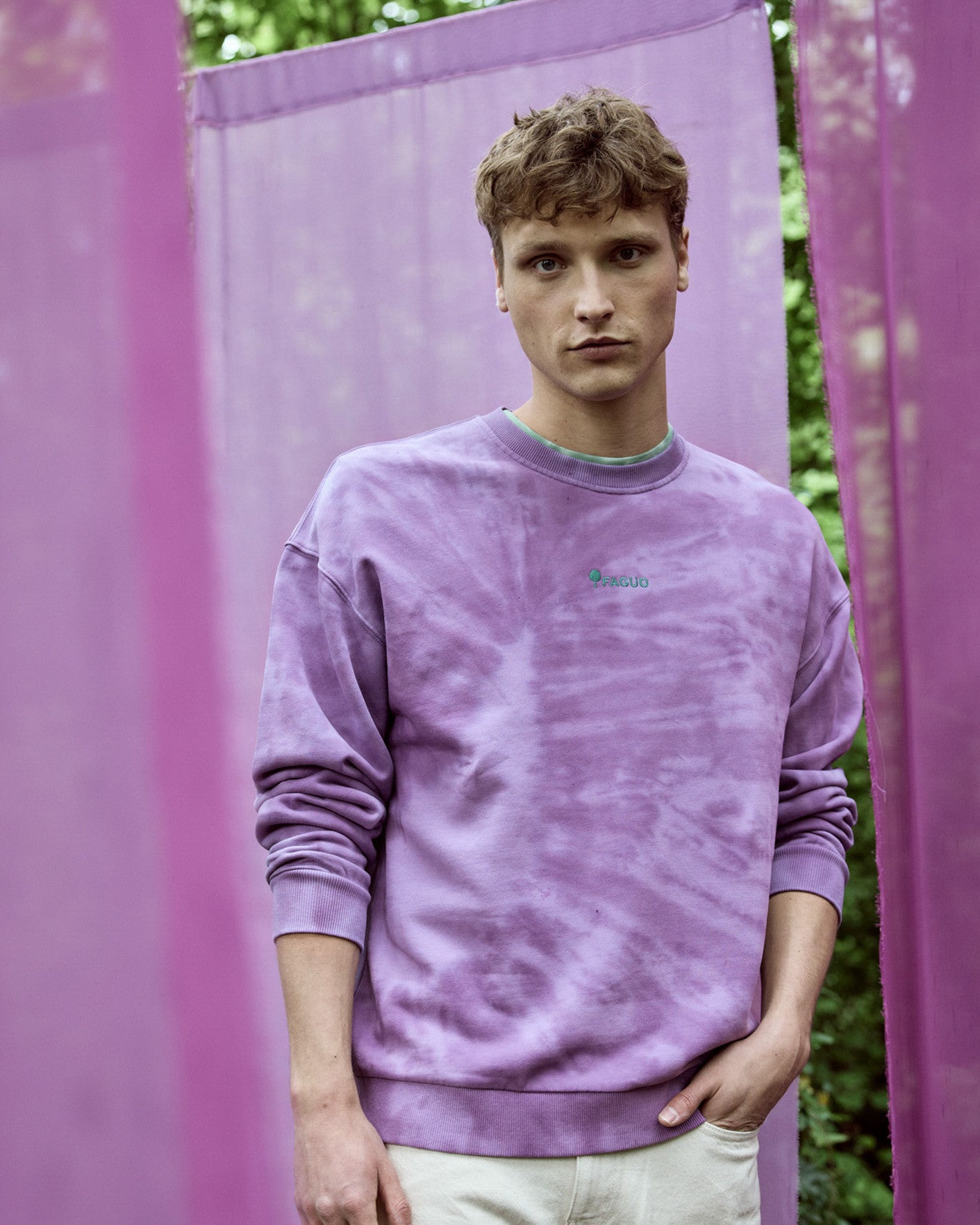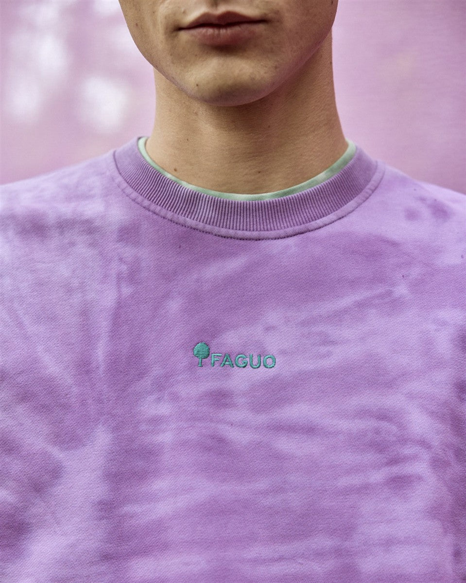 Das violette Rundhals-Sweatshirt FANGO für Herren von FAGUO überzeugt durch seine charakteristische Tie-Dye-Färbung, die jedem Modell eine individuelle Optik verleiht. Der Look setzt einen starken visuellen Akzent, bleibt dabei aber bewusst zurückhaltend und alltagstauglich. Das weiche Molton- bzw. Fleece-Material sorgt für ein angenehmes Tragegefühl und hohen Komfort. Der lockere Schnitt bietet viel Bewegungsfreiheit und macht das Sweatshirt zum idealen Begleiter für entspannte Casual-Outfits. Eine dezente FAGUO Stickerei strukturiert das Design und unterstreicht die hochwertige Verarbeitung. Das Obermaterial besteht aus einem recycelten Materialmix mit Baumwolle und Polyester und verbindet Komfort mit einem verantwortungsbewussten Ansatz. Für die Pflege empfiehlt sich eine Maschinenwäsche bei 30 °C. Das Sweatshirt sollte schonend gebügelt und nicht im Trockner getrocknet werden.