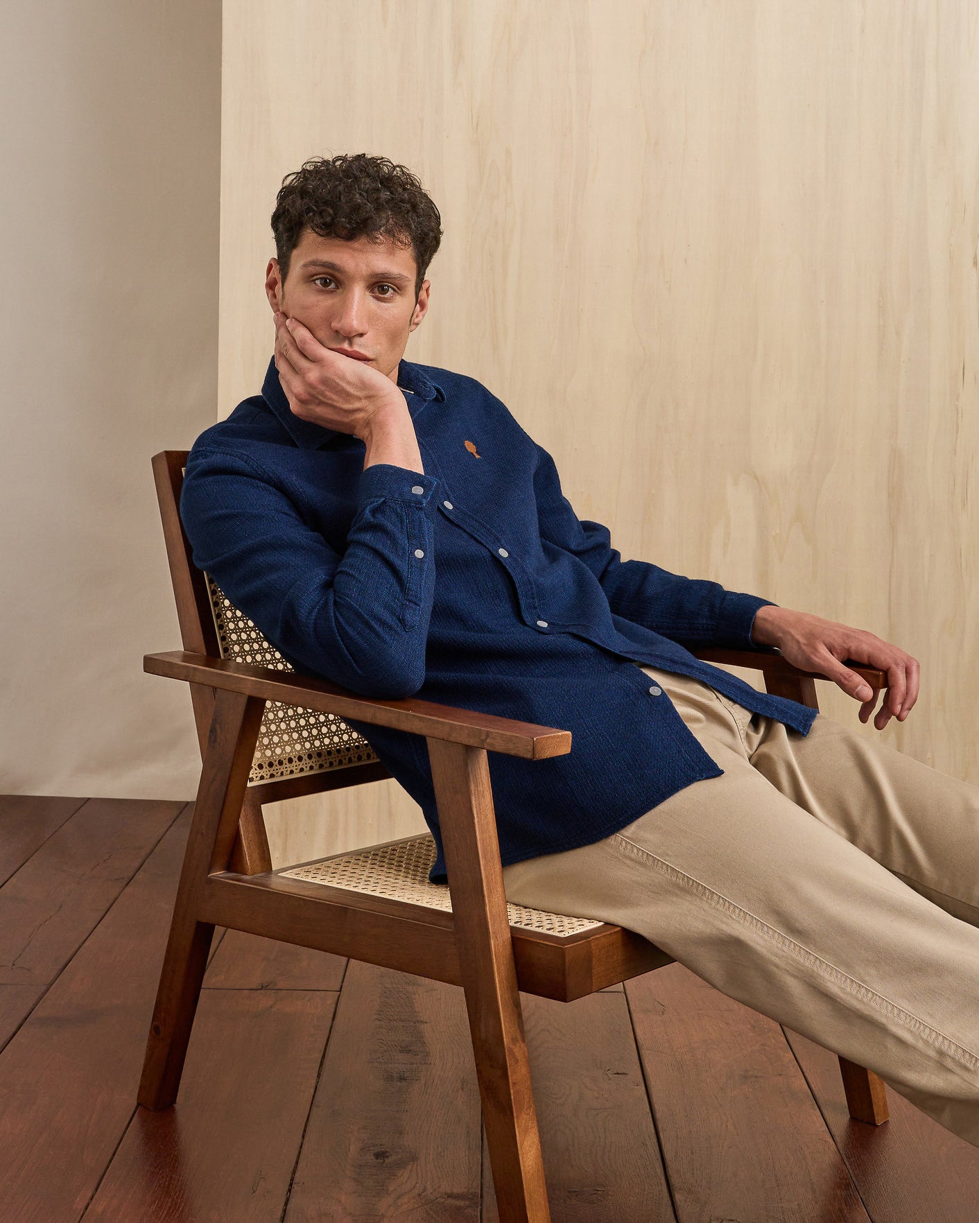Das IRATY Raw-Denim-Herrenhemd von FAGUO ist ein neu interpretiertes Essential für einen modernen, zeitlosen Look. Der gerade, leicht taillierte Schnitt sorgt für eine klare Silhouette und ein angenehmes Tragegefühl im Alltag. Das strukturierte Dobby-Material verleiht dem Hemd Charakter und Tiefe, ohne dabei an Komfort einzubüßen. Dank seines vielseitigen Designs lässt es sich sowohl lässig zu Jeans als auch stilvoll zu eleganteren Hosen kombinieren. Ein dezentes, gesticktes Baum-Logo unterstreicht die nachhaltige Handschrift der Marke. Gefertigt aus 100 % recycelter Baumwolle steht das Hemd für verantwortungsbewusste Materialien und langlebige Qualität. Für die Pflege empfiehlt sich eine Maschinenwäsche bei 30 °C mit ähnlichen Farben. Das Hemd kann normal gebügelt werden und ist nicht für den Trockner geeignet.
