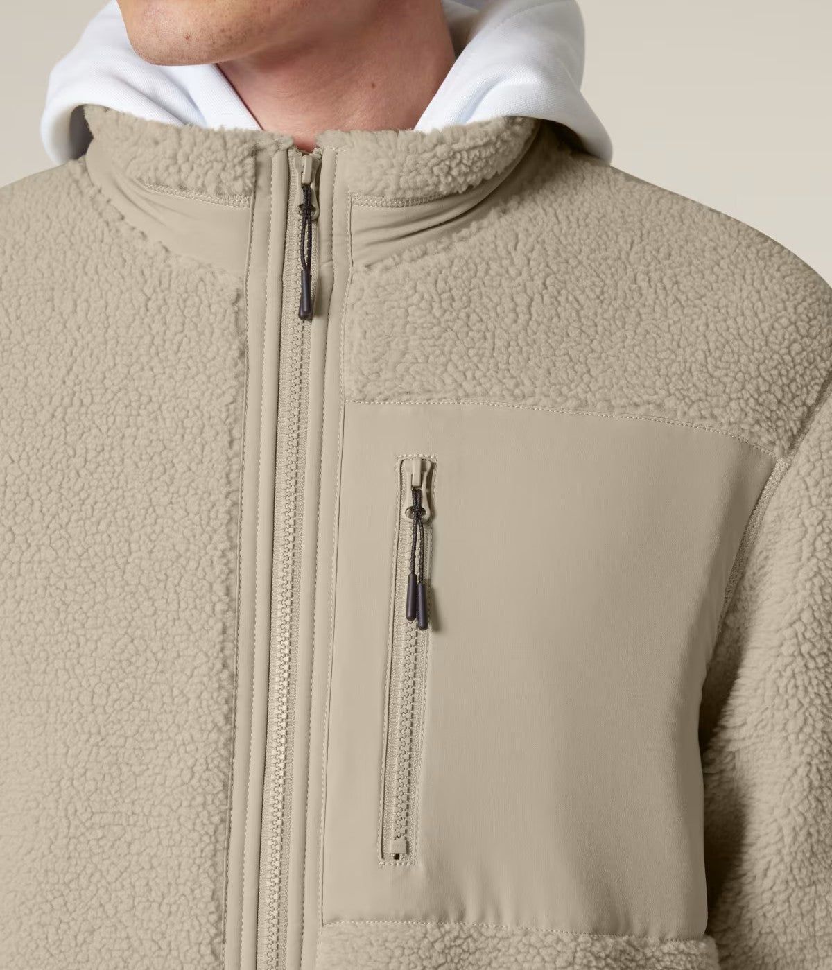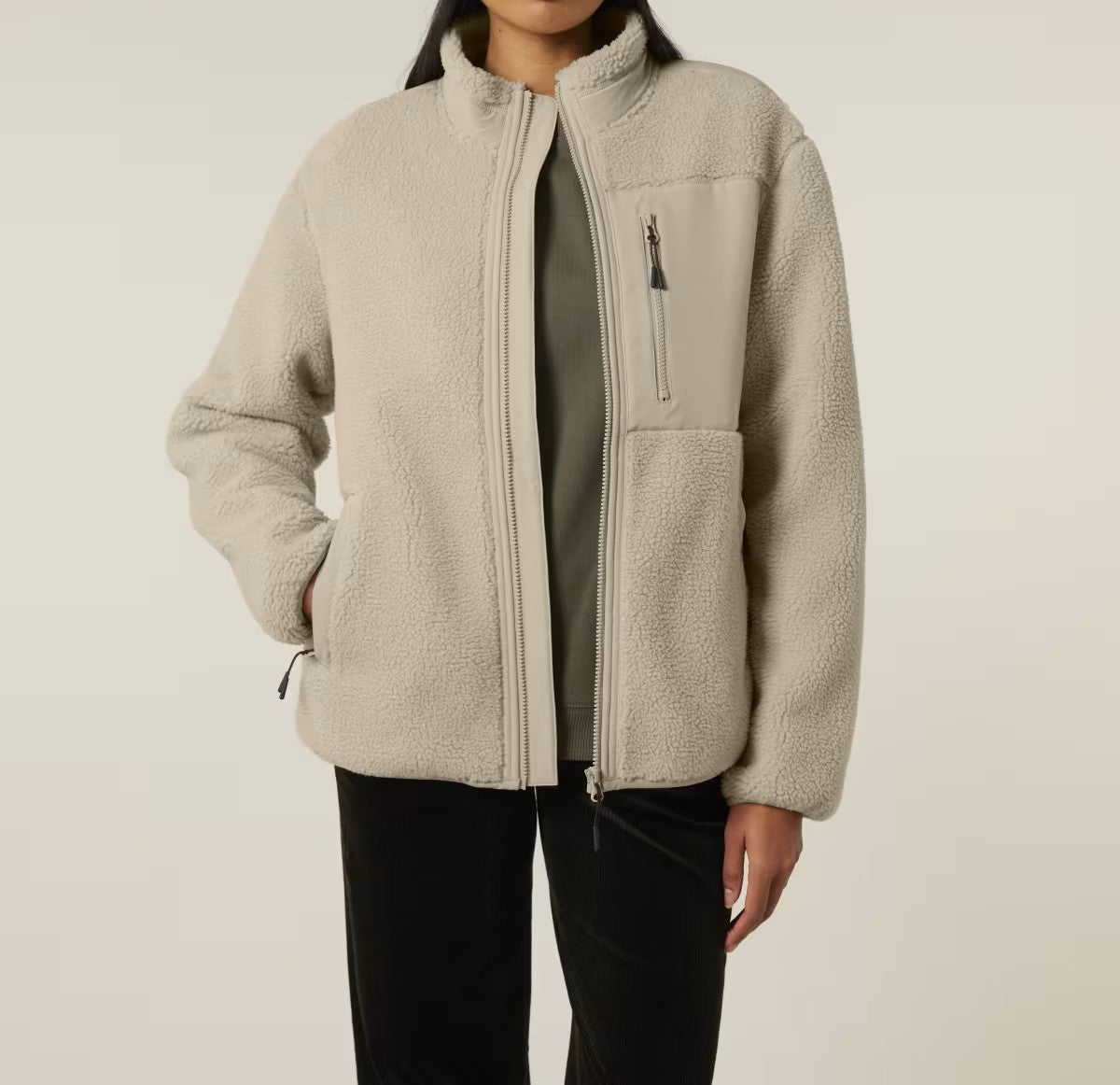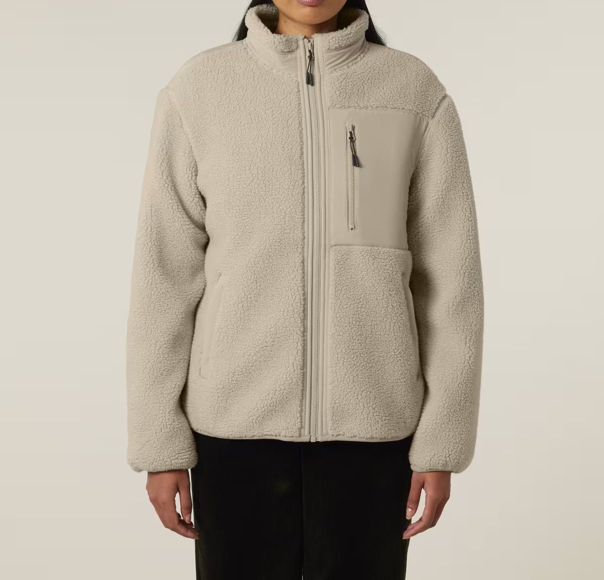 Unsere nachhaltige Sherpa-Jacke von FAIRFITTERS besteht aus 100 % recyceltem Polyester und ist mit einer weichen Polar-Fleece-Innenseite versehen, die Wärme und Komfort bietet. Elastische Bündchen, ein Anti-Pilling-Finish und ein voll verbundener Innenfutter sorgen für langlebige Qualität. Die Jacke verfügt über praktische Softshell-Paspeltaschen, einen verdeckten Reißverschluss und einen inneren Brustreißverschluss für unkomplizierte Veredelung. Vorgewaschenes Material und durchdachte Details machen sie zu einem vielseitigen, nachhaltigen Essential für jeden Tag.
