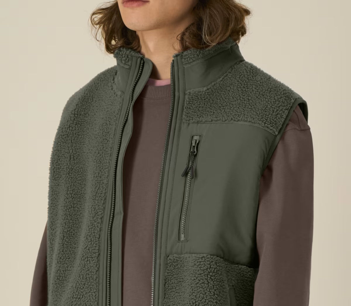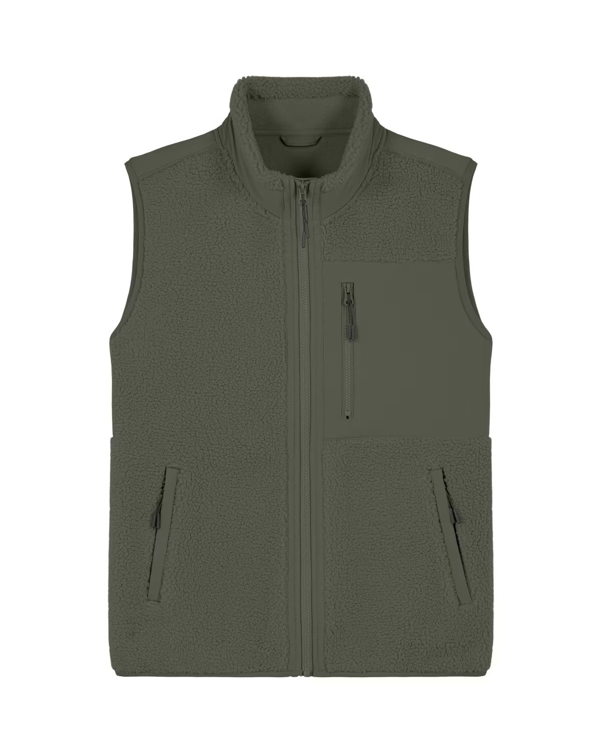 Die Sherpa-Weste von FAIRFITTERS ist aus 100 % recyceltem Polyester gefertigt und mit weichem Polar-Fleece-Innenfutter ausgestattet, das für Wärme und Komfort sorgt. Elastische Bündchen, Anti-Pilling-Finish und ein durchdachtes Innenfutter garantieren langlebige Qualität. Praktische Softshell-Paspeltaschen, ein verdeckter Reißverschluss und ein unsichtbarer Innenreißverschluss auf der Brust machen die Weste vielseitig einsetzbar. Vorgewaschenes Material und nachhaltige Verarbeitung machen sie zu einem idealen Alltags-Essential.