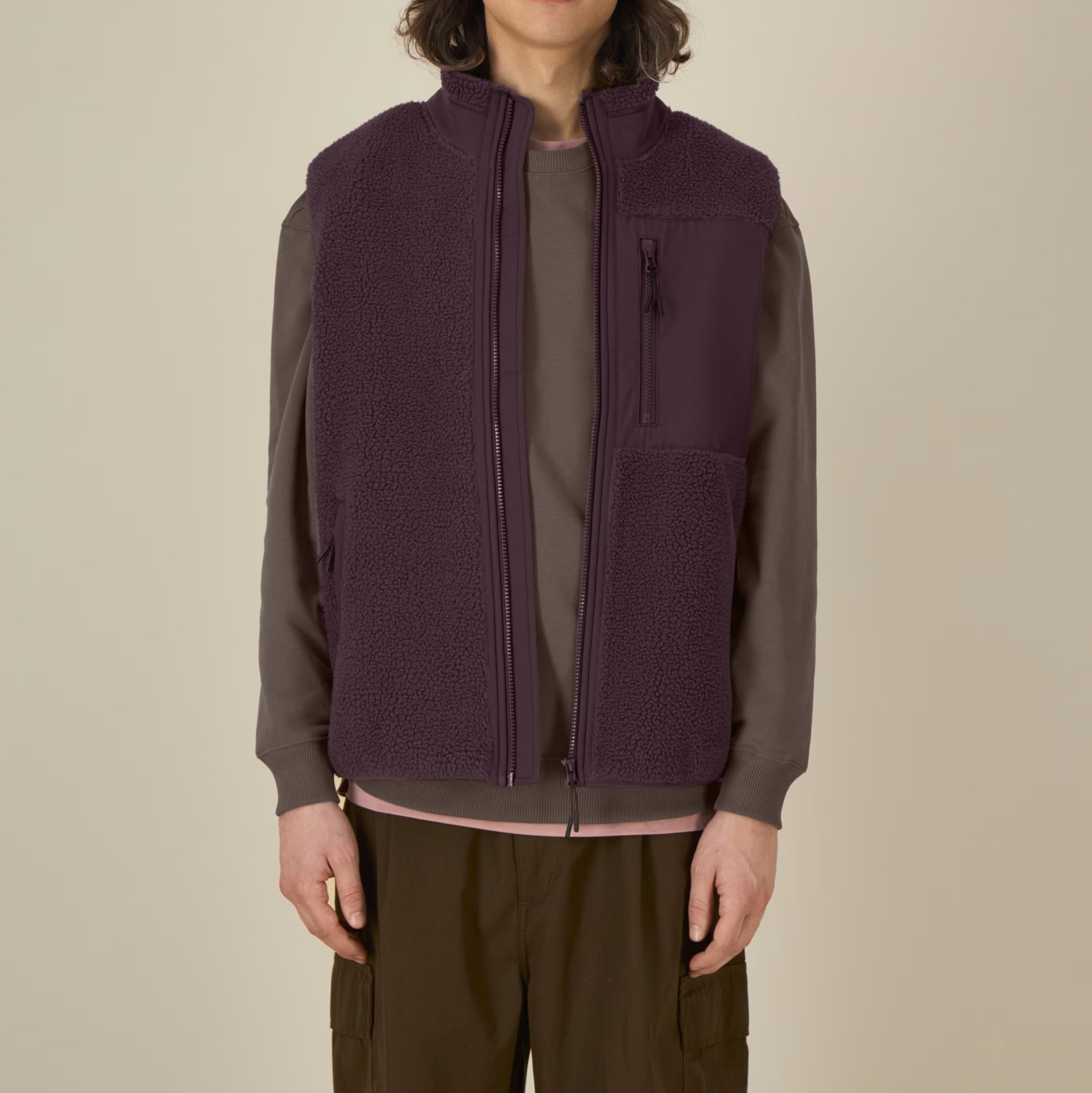 Die Sherpa-Weste von FAIRFITTERS ist aus 100 % recyceltem Polyester gefertigt und mit weichem Polar-Fleece-Innenfutter ausgestattet, das für Wärme und Komfort sorgt. Elastische Bündchen, Anti-Pilling-Finish und ein durchdachtes Innenfutter garantieren langlebige Qualität. Praktische Softshell-Paspeltaschen, ein verdeckter Reißverschluss und ein unsichtbarer Innenreißverschluss auf der Brust machen die Weste vielseitig einsetzbar. Vorgewaschenes Material und nachhaltige Verarbeitung machen sie zu einem idealen Alltags-Essential.