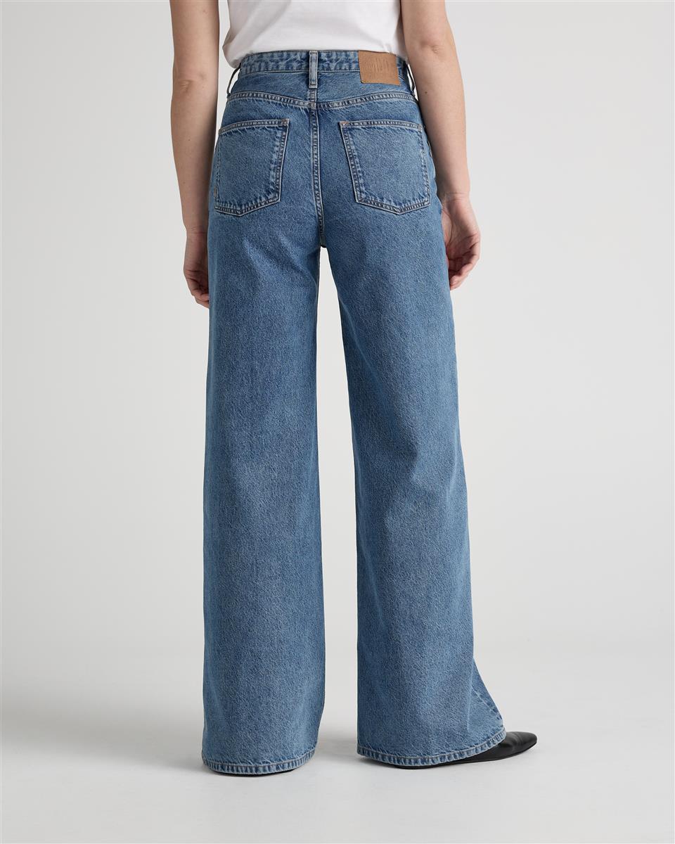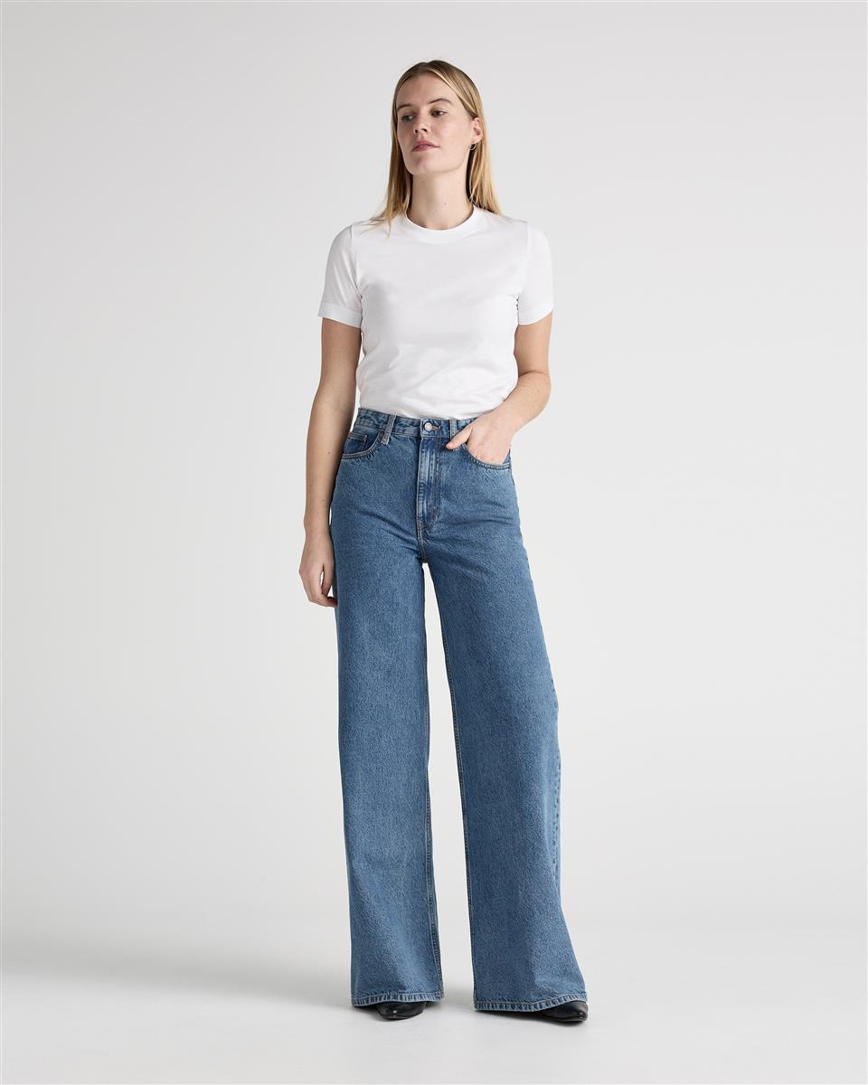 Die Jeans Sara High Loose von MUD JEANS besteht aus 60% Baumwolle (recycelt) & 40% Baumwolle (Bio). Die Jeans ist hoch geschnitten und hat ein weites Bein.