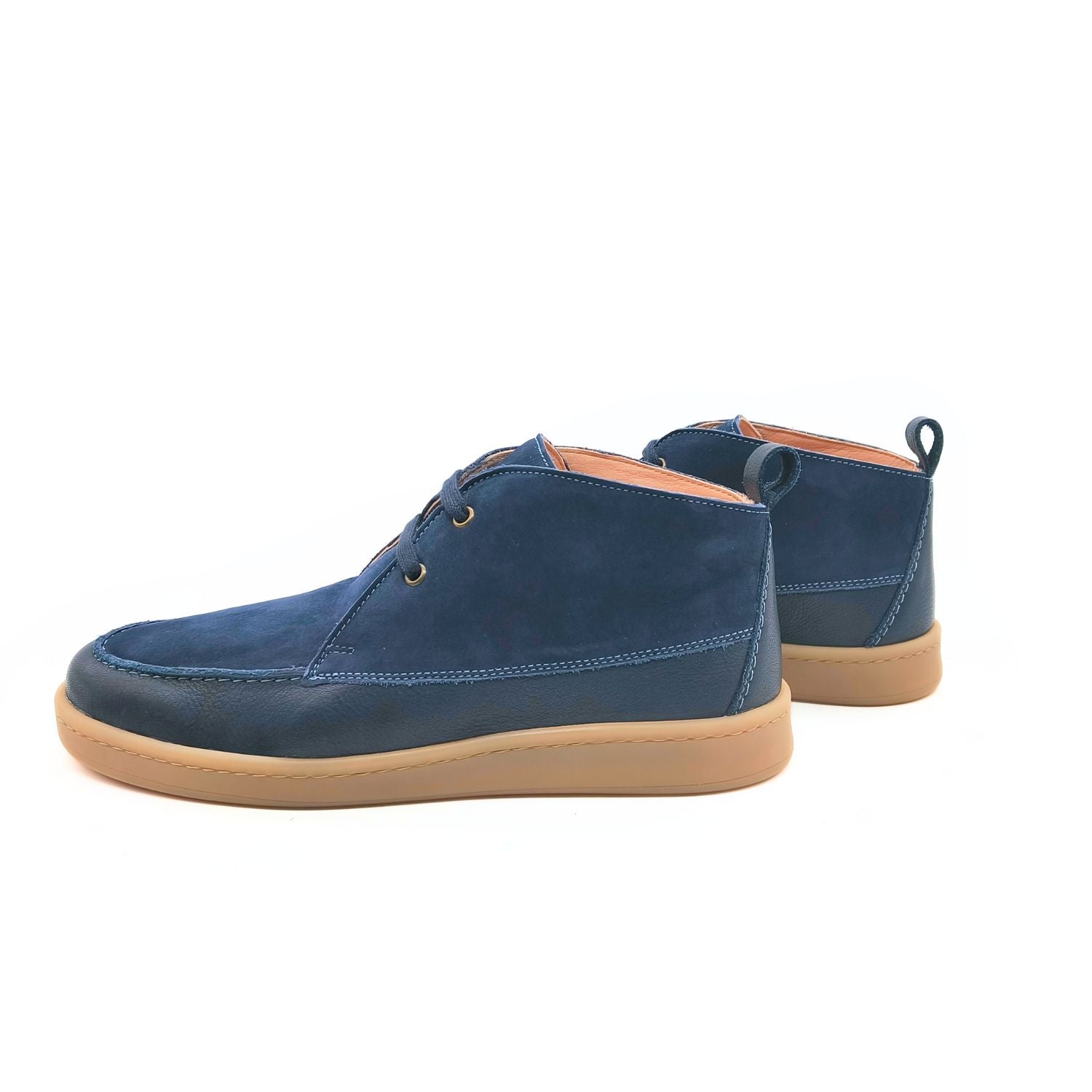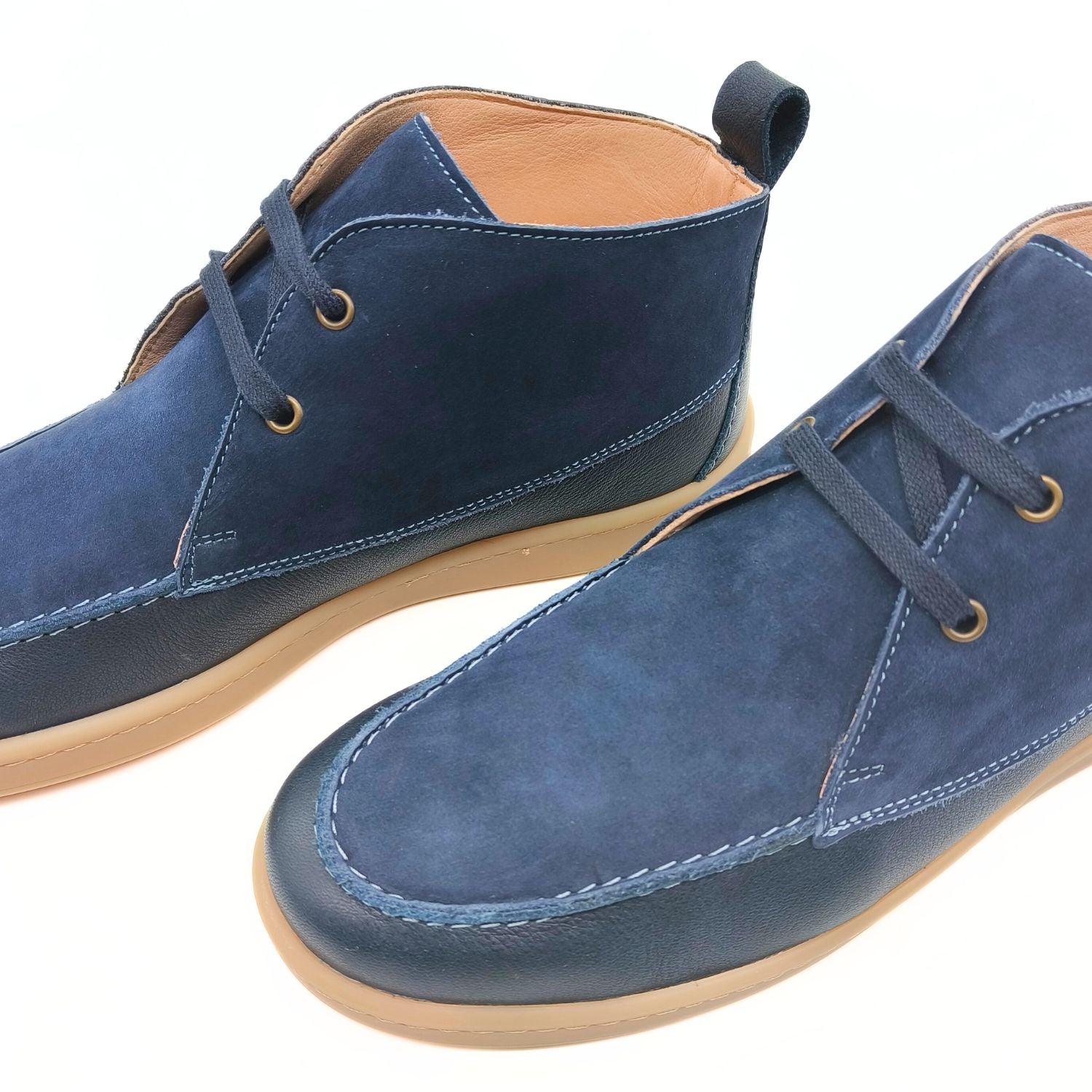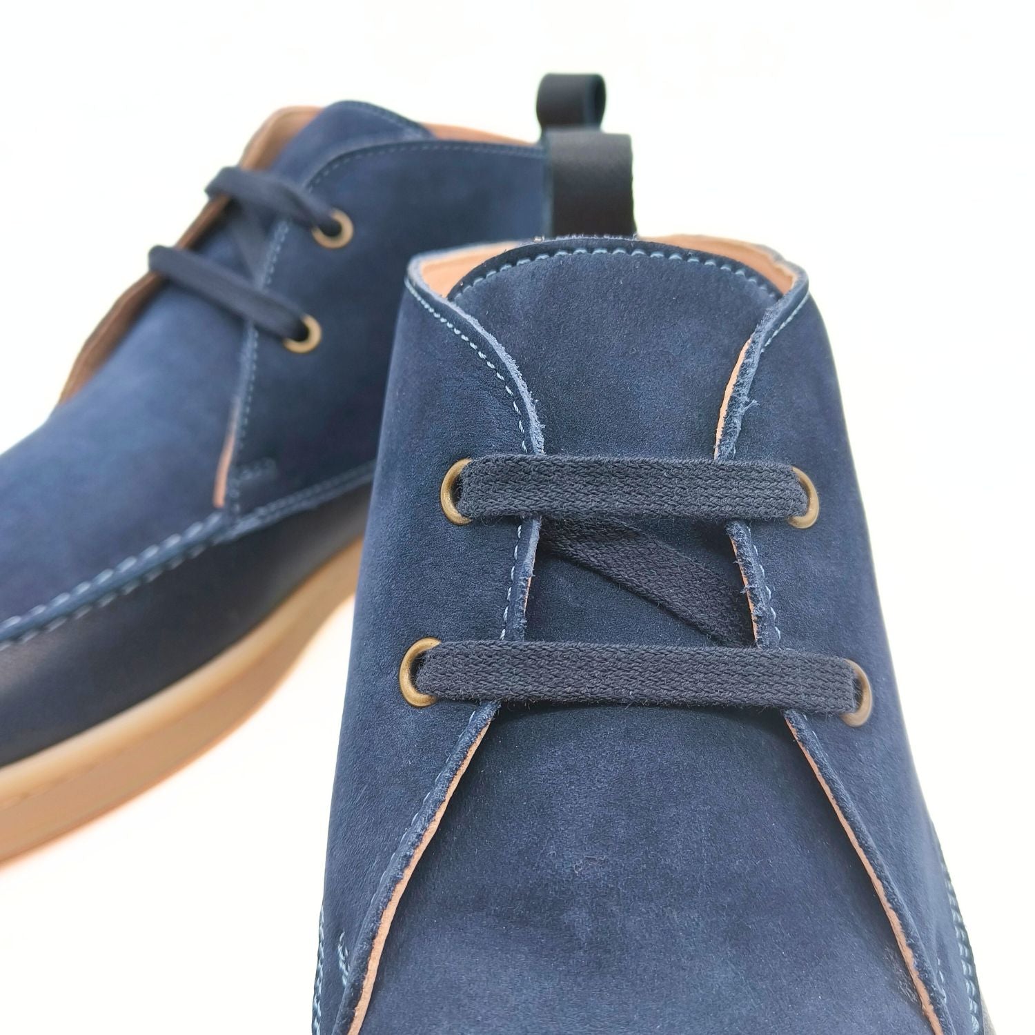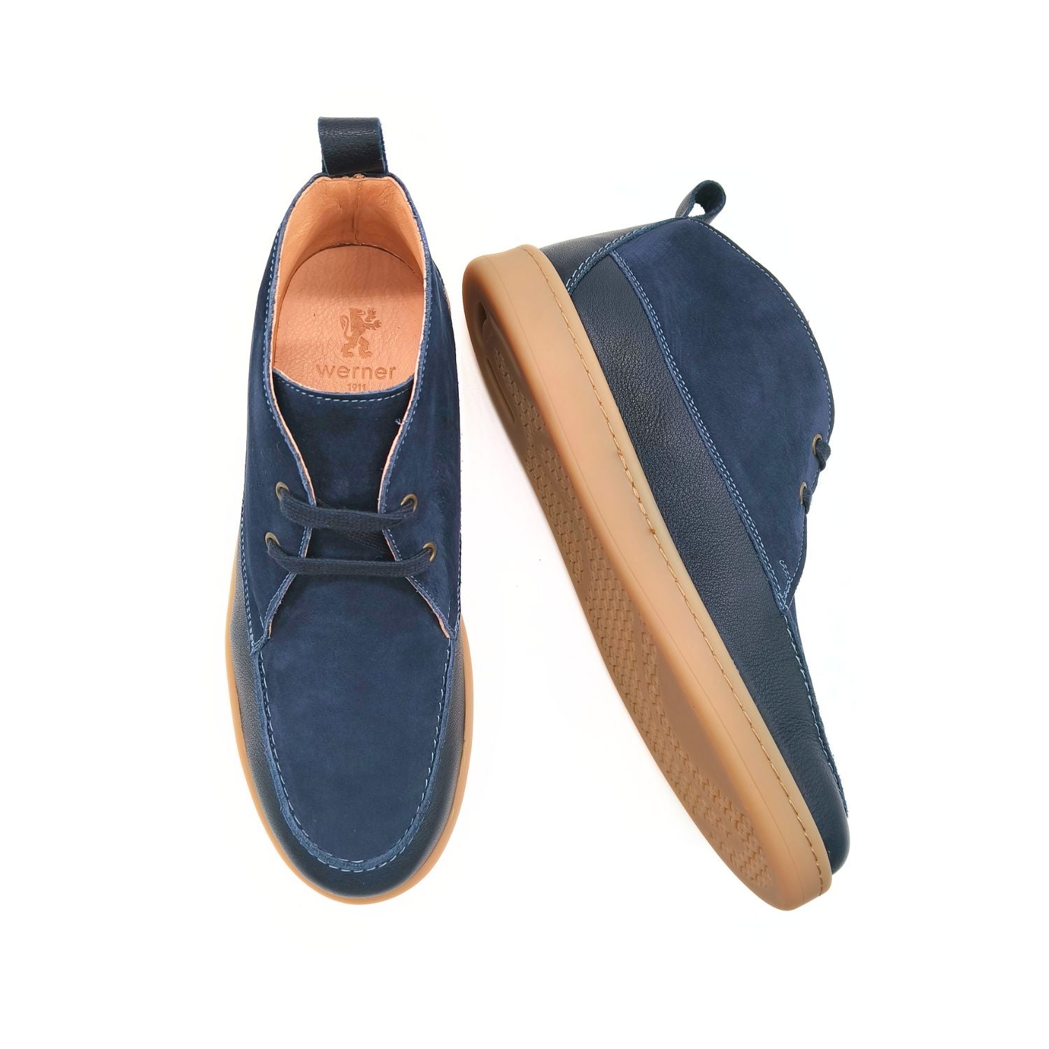 Die Eringer Bio-Chukka Boots von Werner vereinen zeitloses Design mit nachhaltiger Herstellung. Gefertigt aus Bio-Rindsleder (kbT) im edlen Nappa-Nubuk-Mix und ausgestattet mit Bio-Lederfutter (kbT), bieten sie ein gesundes Fußklima und höchsten Tragekomfort. Die Chukkas sind IVN-zertifiziert und in normaler Weite geschnitten. Baumwollschnürsenkel, eine dekorative Naht an der Sohle sowie rutschfestes Rauleder an der Ferse runden das Design ab. Gefertigt werden die Schuhe fair in Europa (Rumänien) unter schadstoffreduzierten Bedingungen. In Dunkelblau sind sie vielseitig kombinierbar – stilvoll, langlebig und nachhaltig.