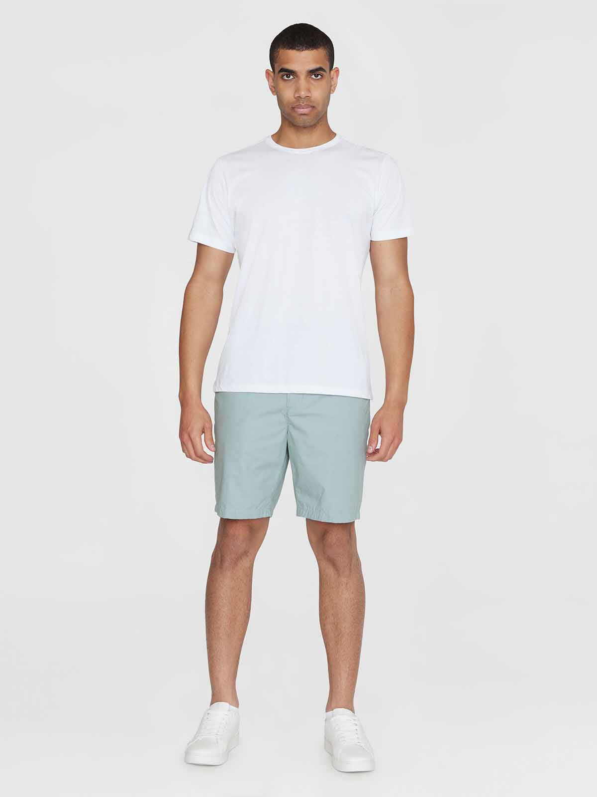 Die Shorts Fig von Knowledge Cotton Apparel ist gerade geschnitten, hat einen bequemen Gummibund mit Knopfverschluss und seitliche Eingriffstaschen. Die kurze Hose besteht aus 100% Baumwolle (bio).