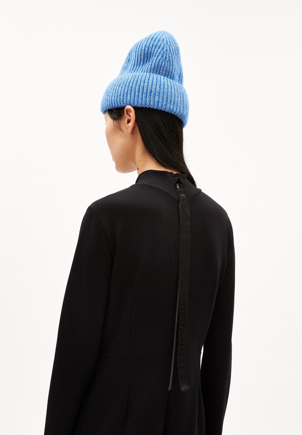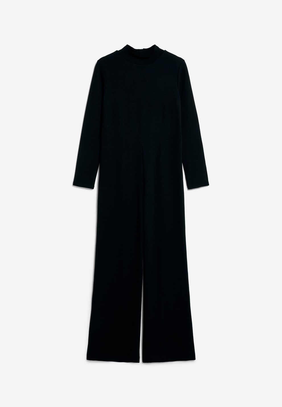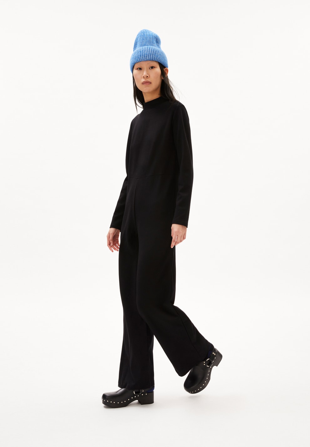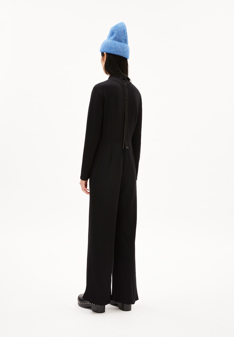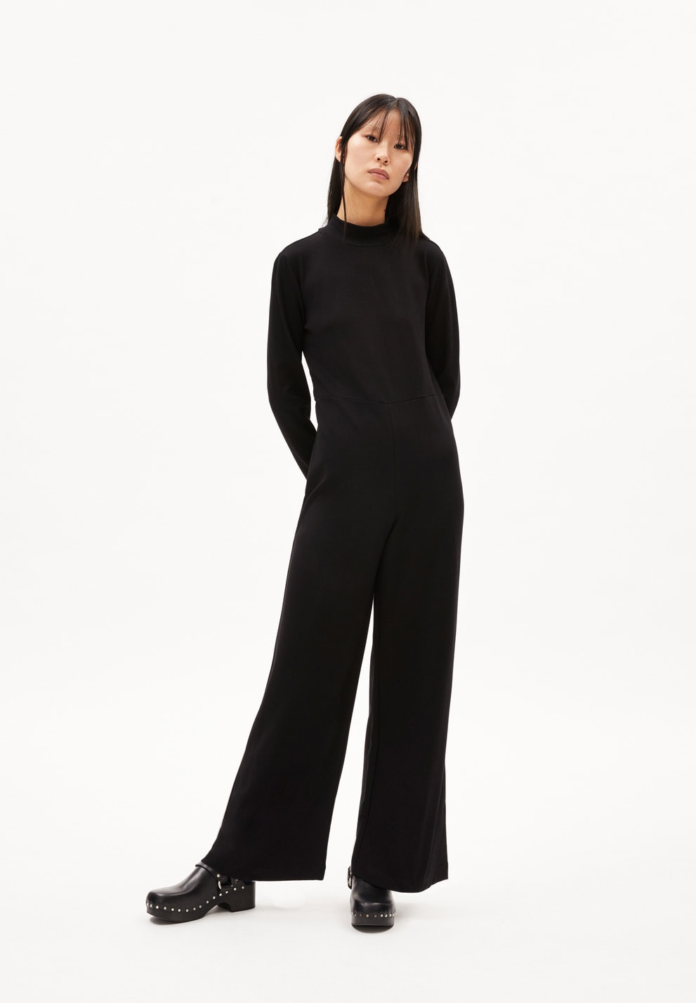 Margaridaa von Armedangels hat einen Mock-Ausschnitt, ein weites Bein und lässt sich mit einem Reißverschluss am Rücken schließen. Der Jumpsuit besteht aus 82% Viskose (LENZING™ ECOVERO™), 16% Polyamid (recycelt) und 2% Elasthan.