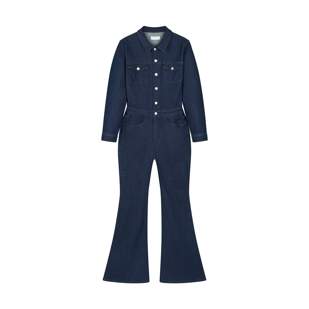 Grace von DAWN ist ein femininer Overall mit langem Arm, tailliertem Oberteil und ausgestelltem Beinverlauf. Die schmale Passform bis zum Knie sorgt für eine elegante Silhouette, bevor das Bein in eine sanfte Schlagform übergeht. Der Einteiler besteht aus 55% Lyocell TENCEL™, 40% Regenerative Baumwolle, 3% Elastomultiesester T-400 ®, 2% Elastan.