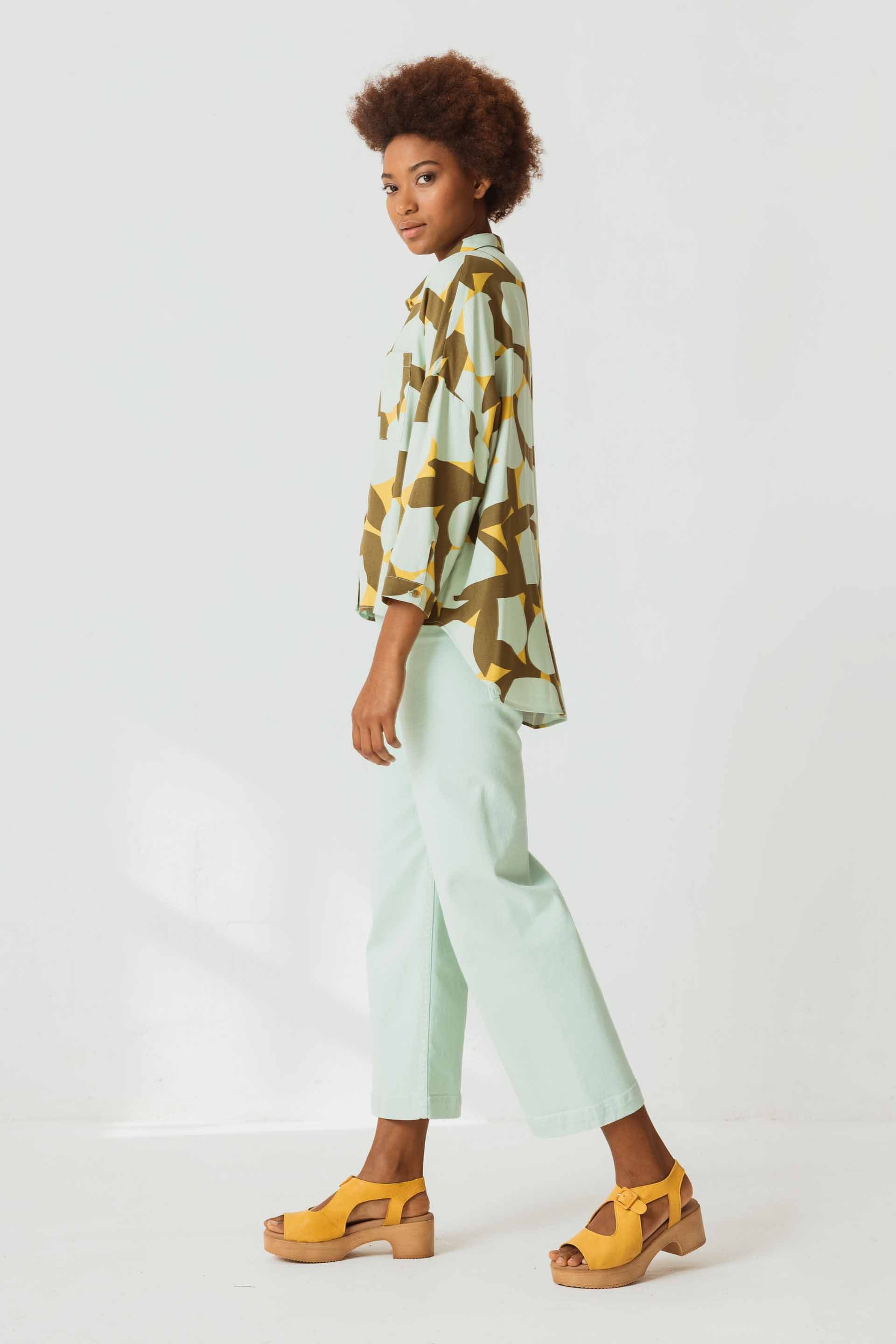Luzea von SKFK ist high waist geschnitten und hat ein gerades weites Bein. Die cropped geschnittene Hose wurde aus 99% Baumwolle (bio) und 1% Elasthan gefertigt.