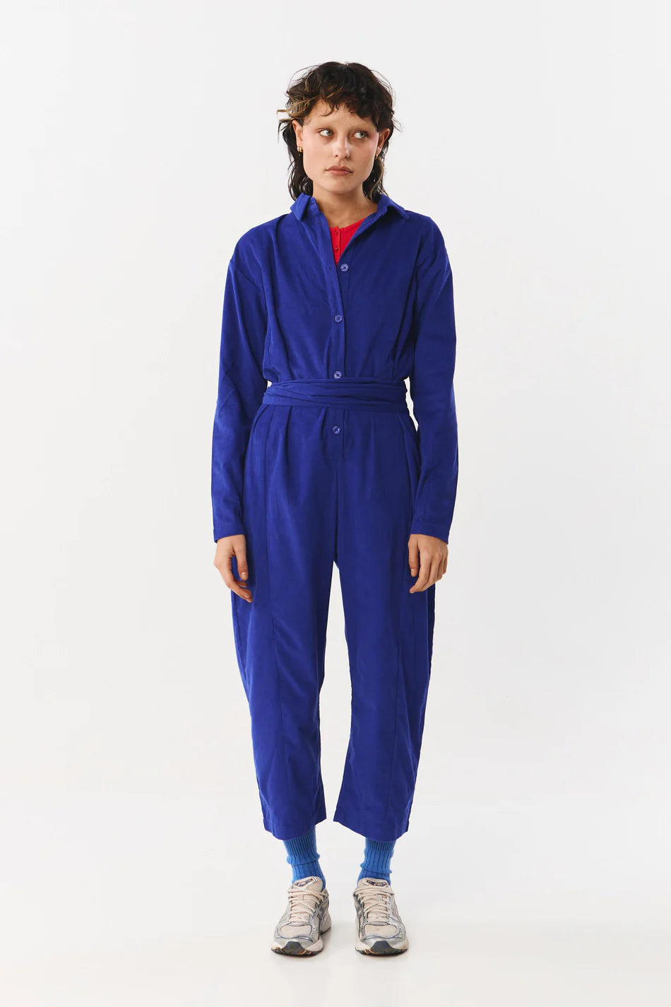 Der Massy Jumpsuit von SUITE 13 aus weichem Bio-Baumwoll-Cord verbindet Komfort, Stil und Funktionalität in einem. Er überzeugt mit einem klassischen Reverskragen, langen Ärmeln, Fronttaschen für alle Essentials und praktischen Corozo-Knöpfen vorne. Der passende Gürtel ist abnehmbar und sorgt für eine individuelle Silhouette. Mit seinem zeitlosen Design eignet sich der Jumpsuit sowohl für den Alltag als auch für besondere Anlässe und vereint Mode und Funktion mühelos.