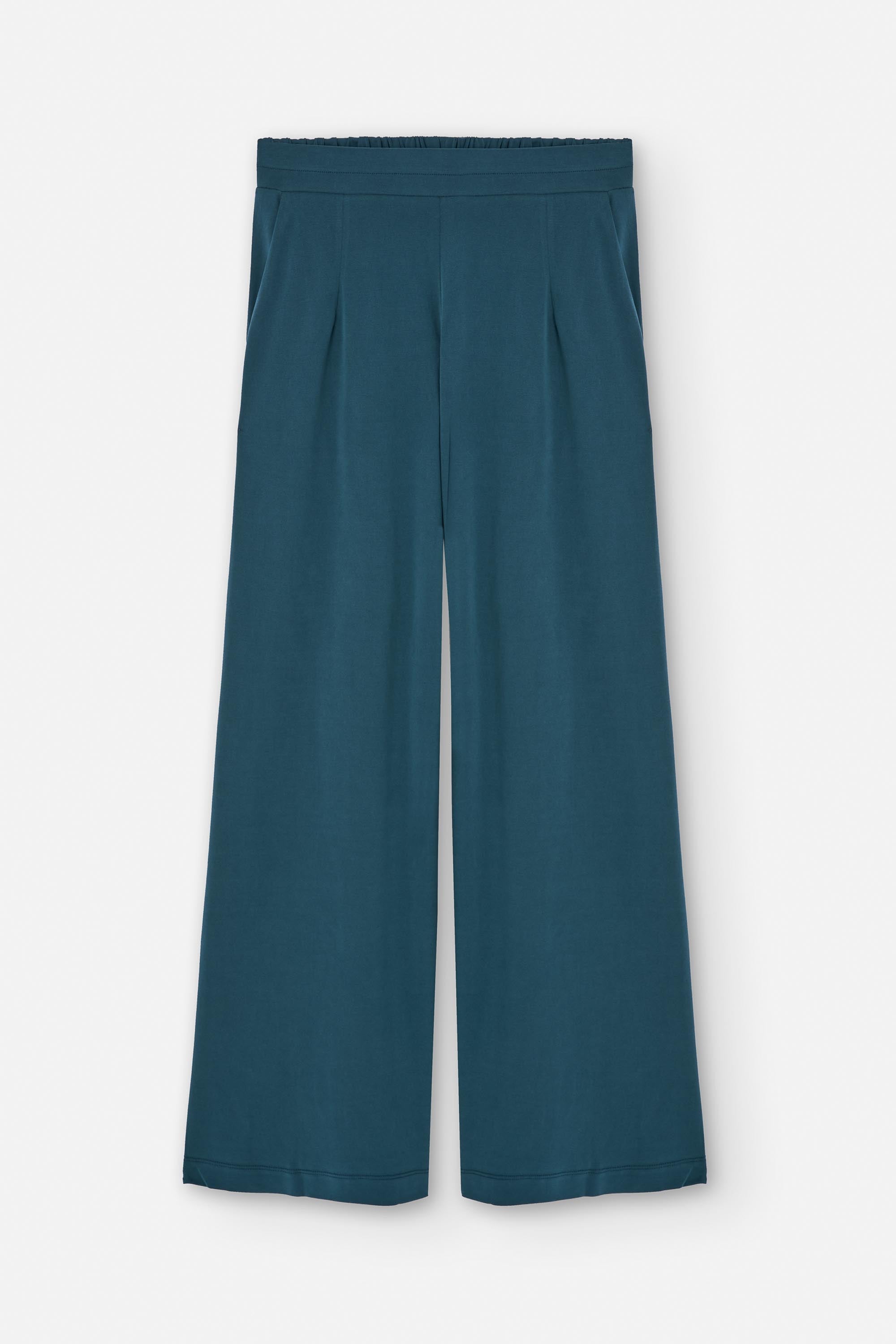 Hose mit weitem Bein aus Jersey-Cupro-Touch, mit vorderen Seitentaschen und elastischem Bund. Yala von SUITE 13 gefertigt aus 49% TENCEL™ Modal, 43% PES und 8% Elasthan.