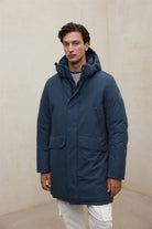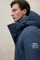 Der New Iceberg Mantel von ECOALF kombiniert modernes Design mit nachhaltigen Materialien. Das Obermaterial besteht aus 58 % recyceltem Polyester aus dem Projekt Hilo del Mar und 42 % recyceltem Polyester aus Tex2Tex. Futter und PrimaLoft®-Füllung sind ebenfalls aus 100 % recyceltem Polyester gefertigt. So trägt der Mantel dazu bei, Ozeane von Plastikmüll zu befreien und Textilabfälle im Kreislauf zu halten. Der Schnitt ist regular, mit verdeckter Magnetleiste und Zwei-Wege-Reißverschluss. Praktische Details wie verschließbare Fronttaschen, eine Innentasche, elastische Ärmelbündchen und eine verstellbare Kapuze sorgen für Komfort. Thermoversiegelte Nähte und die weiche Wattierung bieten zuverlässigen Schutz an kalten Tagen. Der Mantel ist vegan und steht für nachhaltige Mode ohne Kompromisse.