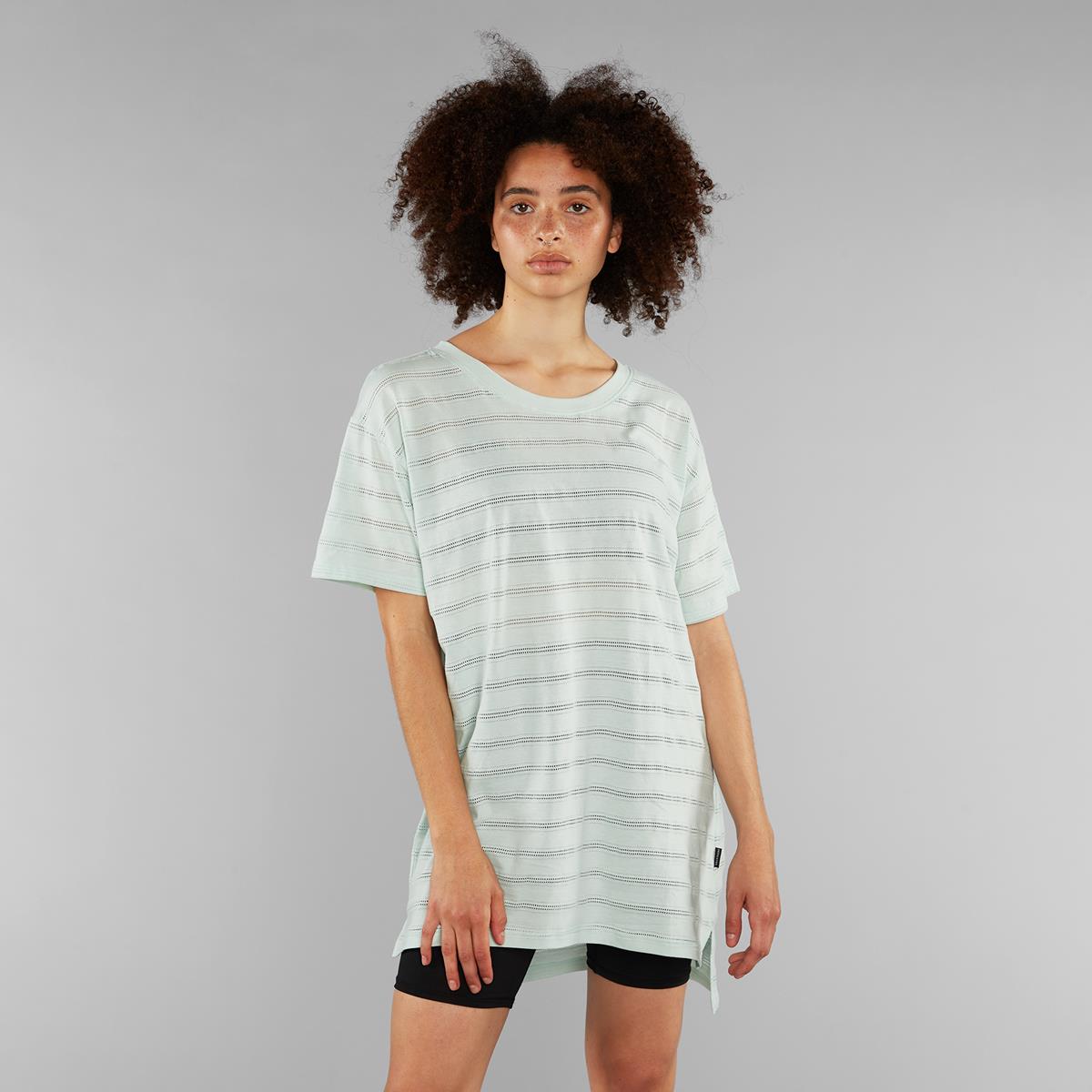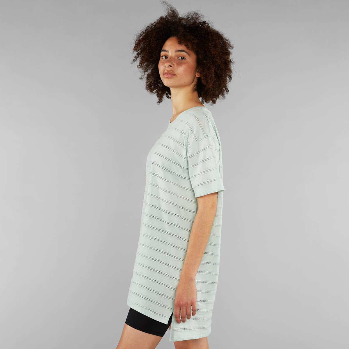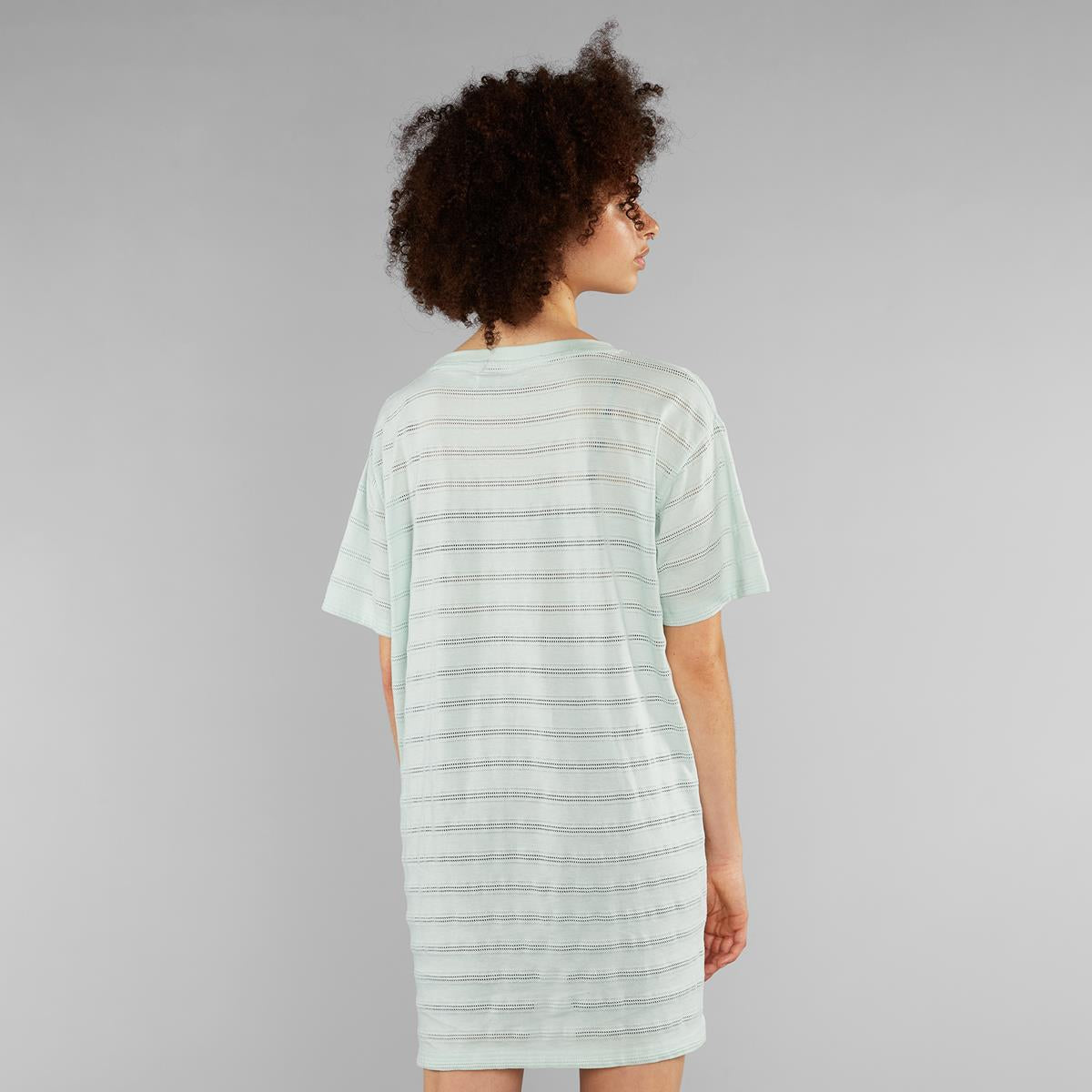 Das Kleid Alta Lace von Dedicated besteht aus 100% Bio-Baumwolle und ist mit der gestreiften Perforierung ein verspieltes Basic Kleid.
