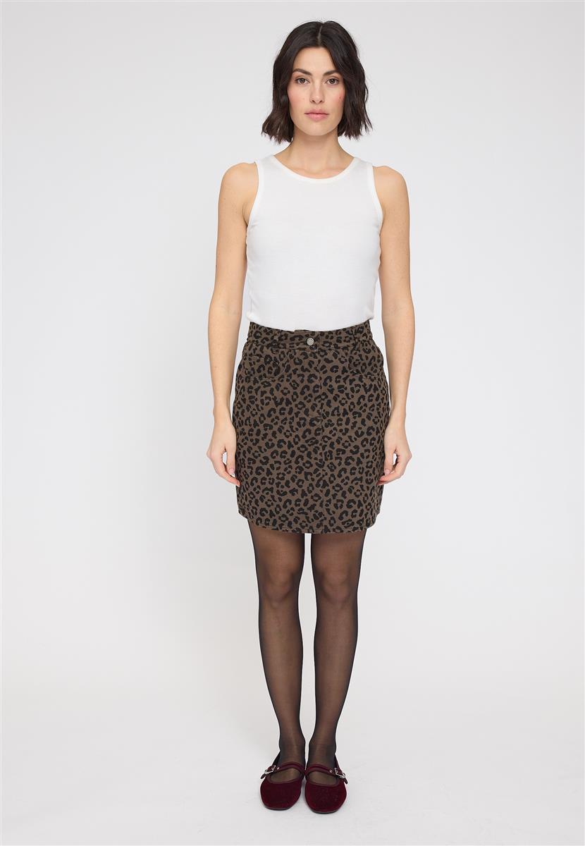 MAZINE Printed Mini Denim Skirt chocolate brown/printed