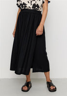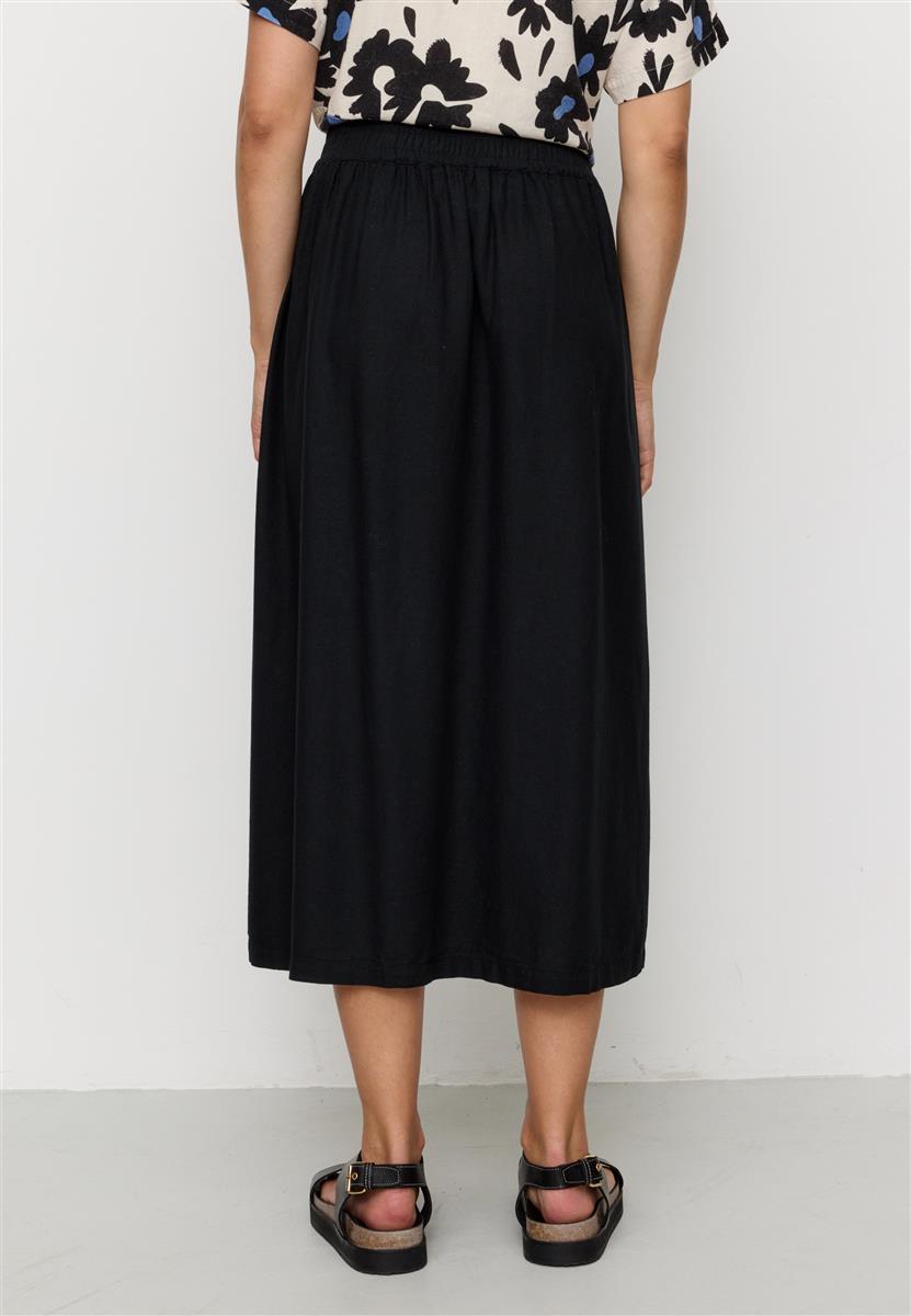 Das schlichte Design lässt sich vielseitig mit Shirts, Tops oder Blusen kombinieren. Gefertigt aus 65 % TENCEL™ Viskose und 35 % Leinen ist der Rock PETA-approved vegan.
