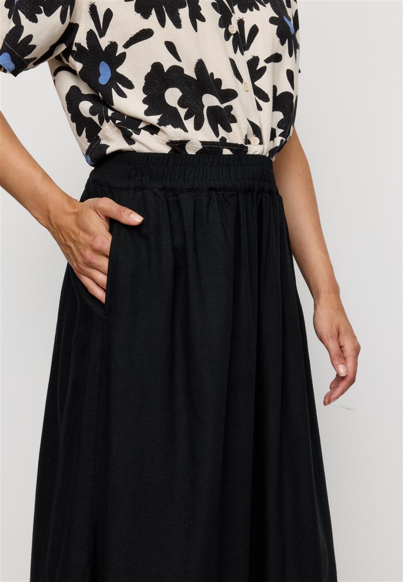 Der locker fallende Rock aus einem leichten Leinen-Viskose-Mix begleitet dich angenehm durch warme Tage. Der elastische Bund sorgt für hohen Tragekomfort und eine flexible Passform, während seitliche Taschen praktische Alltagstauglichkeit bieten.