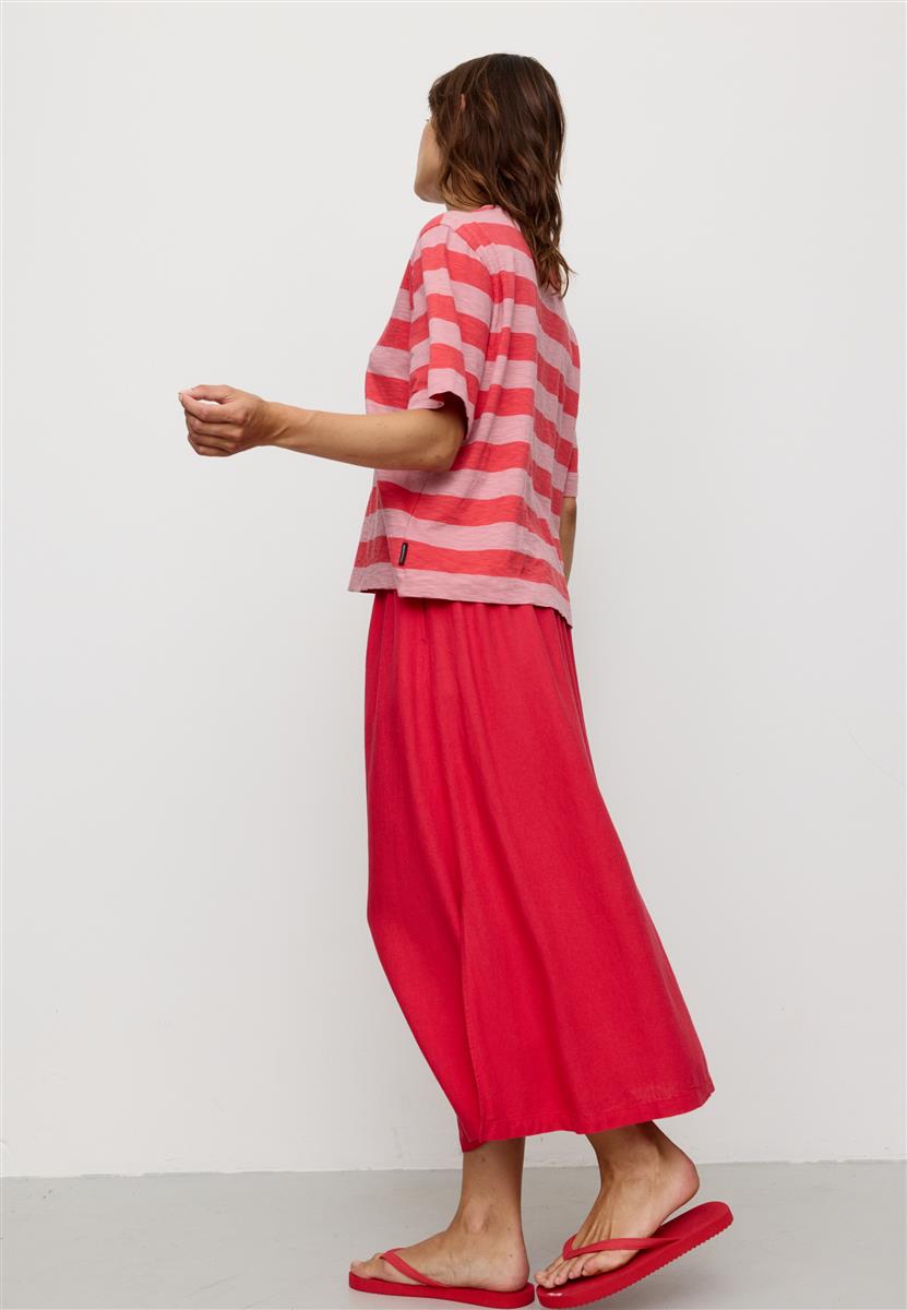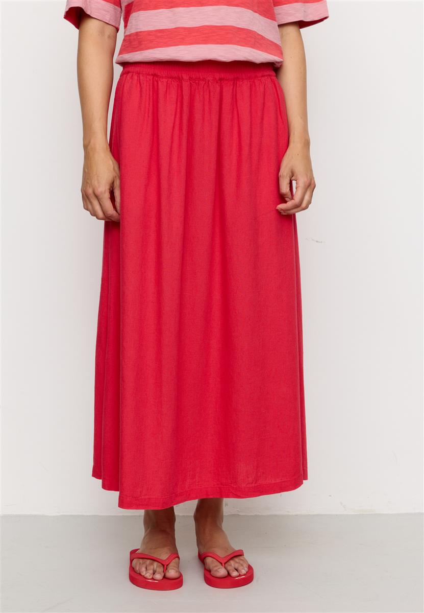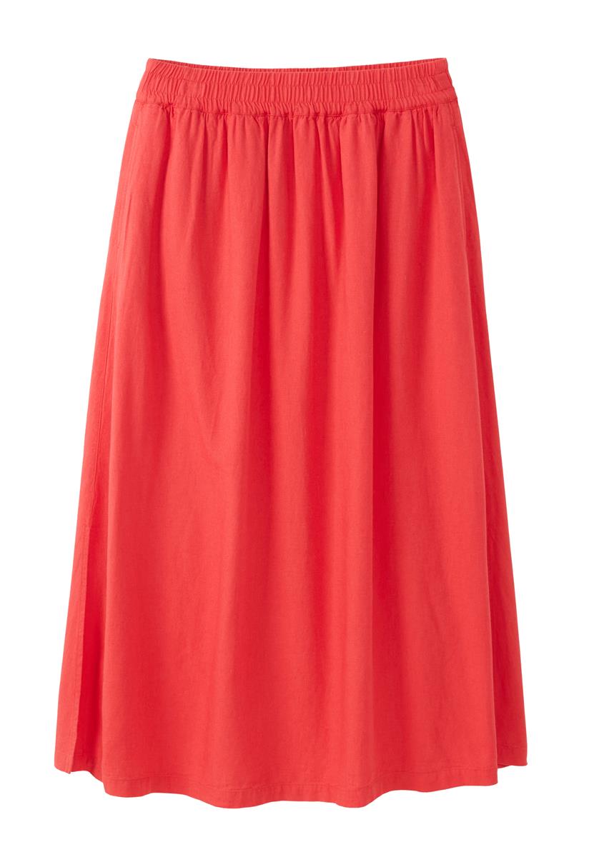 Der locker fallende Rock aus einem leichten Leinen-Viskose-Mix begleitet dich angenehm durch warme Tage. Der elastische Bund sorgt für hohen Tragekomfort und eine flexible Passform, während seitliche Taschen praktische Alltagstauglichkeit bieten.