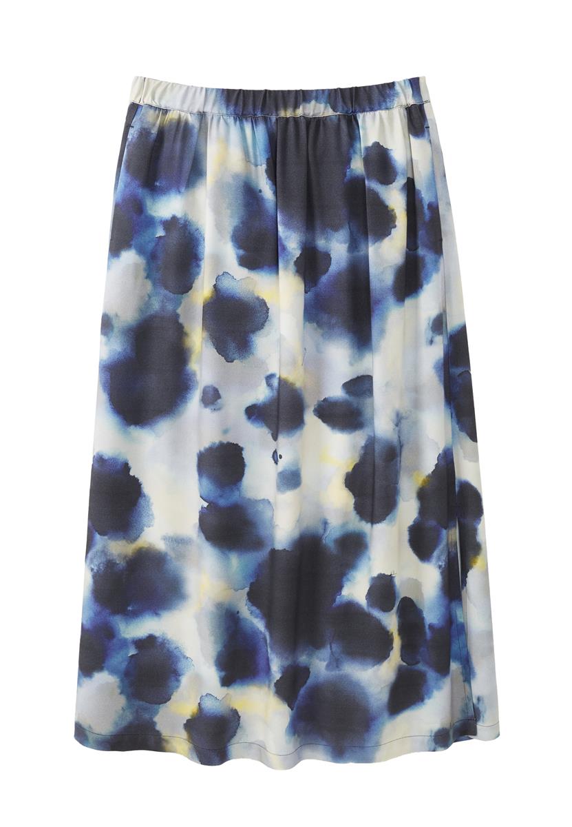 Der Rock überzeugt mit einem fließenden Stoff und einem ausdrucksstarken Watercolor-Print. Das leichte Material sorgt für eine feminine, lebendige Silhouette.