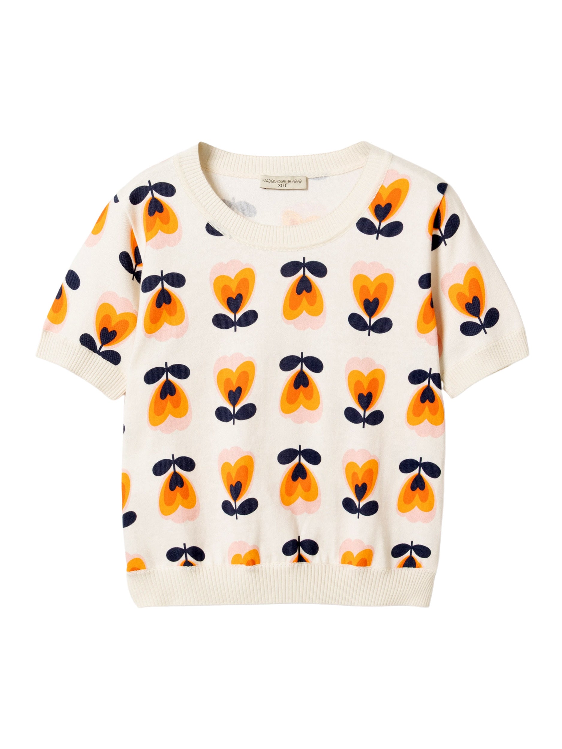 MADEMOISELLE YÉYÉ Flower Love Knit Top white