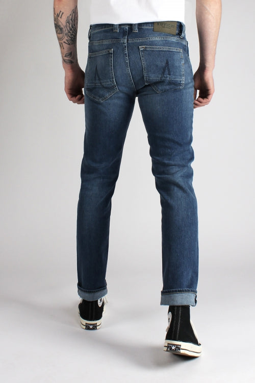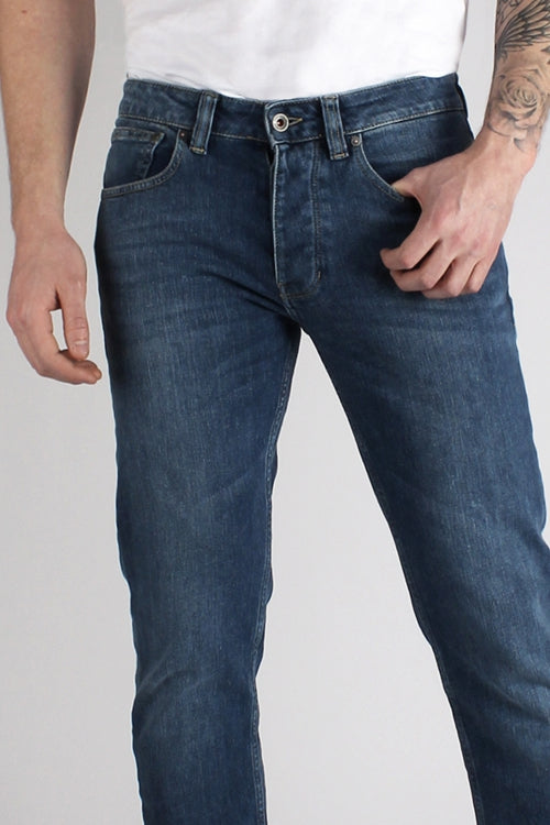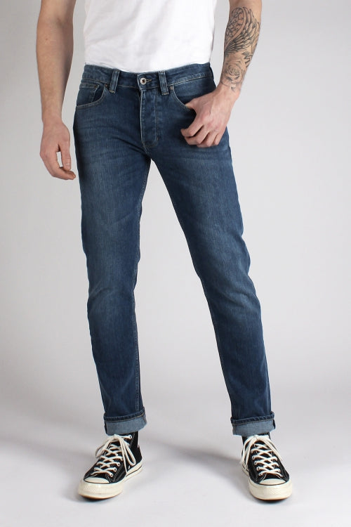 Jamie ist eine Slim Fit Jeans, sprich schmal geschnitten. Die 5-Pocket Hose besteht zu 99% aus Bio-Baumwolle, wovon 20% recyceltes Jeans Garn ist und 2% Elasthan, auch das Patch ist vegan.