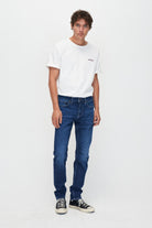 Jeans Jim von Kuyichi ist eine Regular Fit Hose. An der Hüfte und den Oberschenkeln etwas weiter, im Schritt ist sie etwas tiefer geschnitten und Richtung Knöchel wird sie immer schmaler. Die stylische 5-Pocket Jeans besteht zu 99 % aus Baumwolle (bio) und1% Elastan.