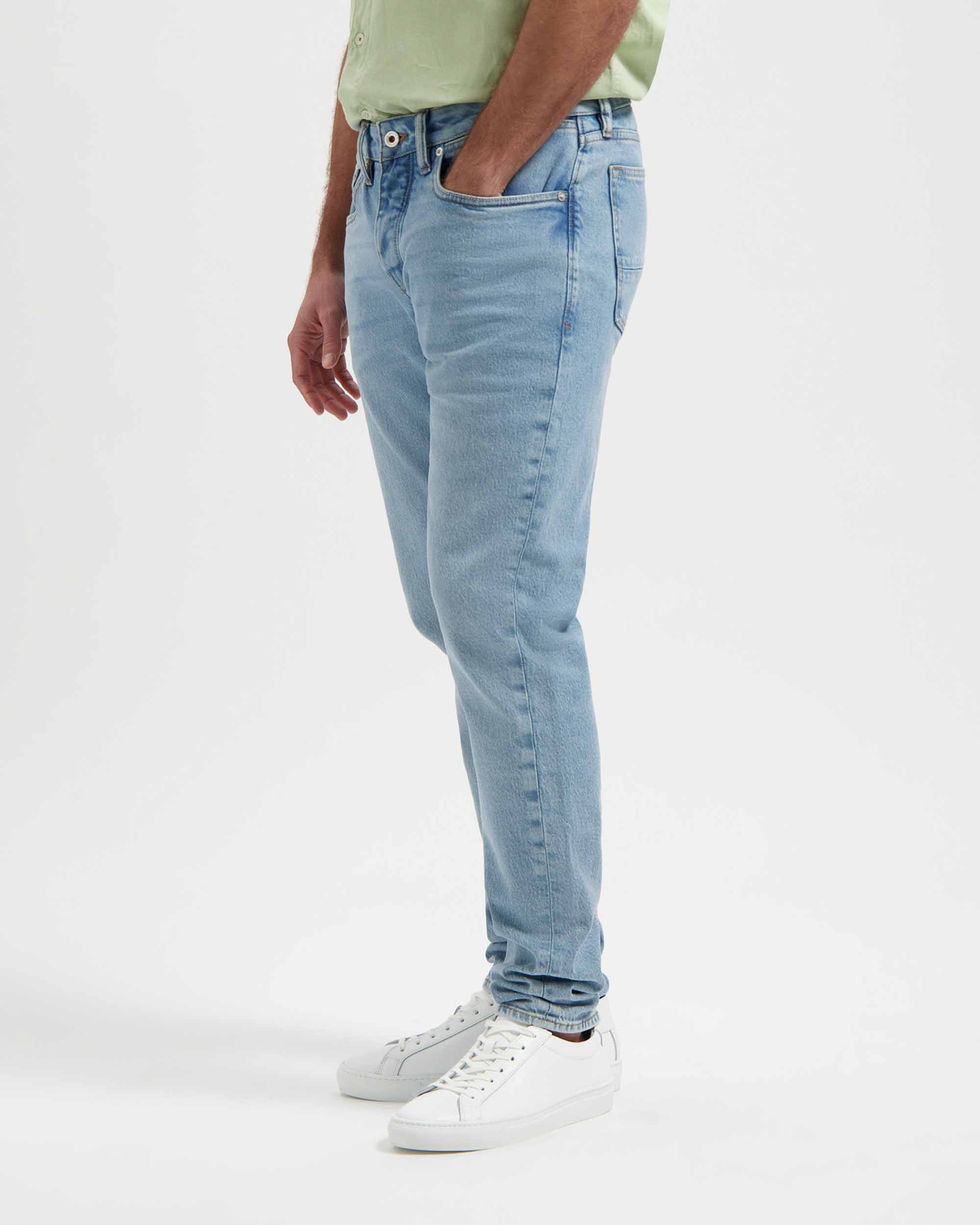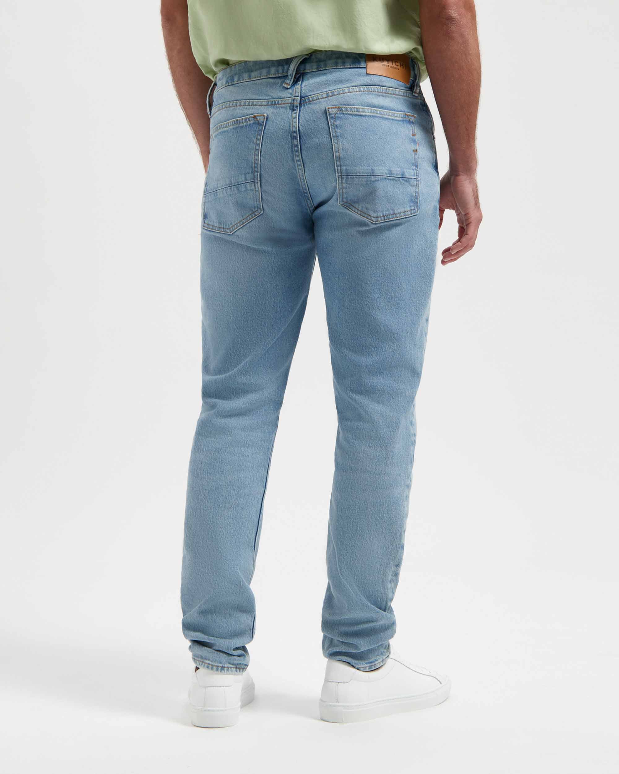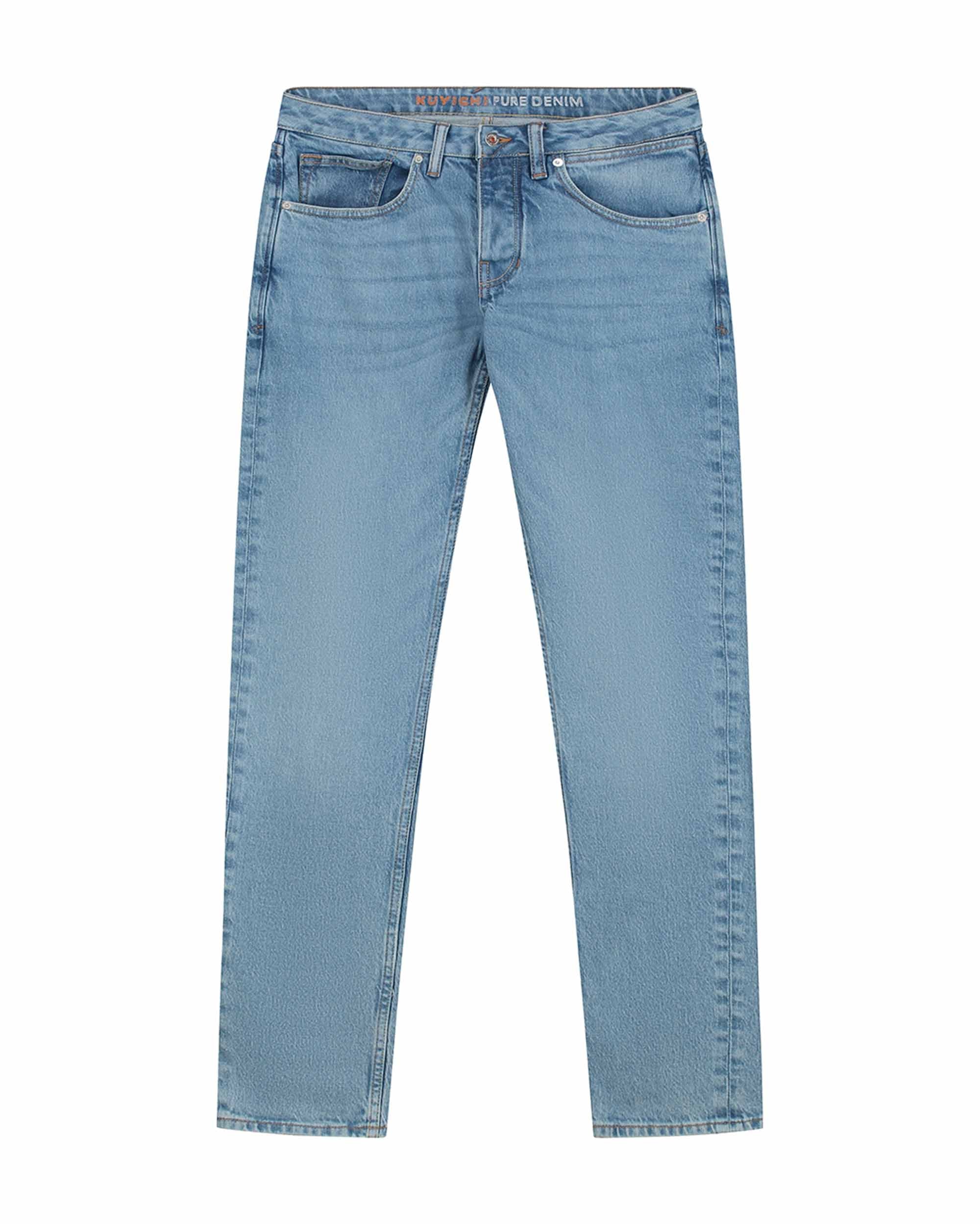 Jeans Jim von Kuyichi ist eine Regular Fit Hose. An der Hüfte und den Oberschenkeln etwas weiter, im Schritt ist sie etwas tiefer geschnitten und Richtung Knöchel wird sie immer schmaler. Die stylische 5-Pocket Jeans besteht zu 67% aus Baumwolle (bio), 2% Polyester (recycelt) und 1% Elastan. Das Model ist 1.82 m groß und trägt Größe 32/32.