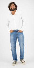 Die „Extra Easy“ ist eine Jeans von MUD mit relaxtem und legerem Schnitt. Sie ist an der Hüfte und den Oberschenkeln etwas weiter, im Schritt etwas tiefer geschnitten und Richtung Knöchel wird sie immer schmaler.