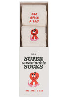 Gerippte Socken Artist Edition 2 Paare in crean melange / one apple a day von MELAWEAR, hergestellt aus 97% Baumwolle (Bio) und 3% abbaubares Elasthan.