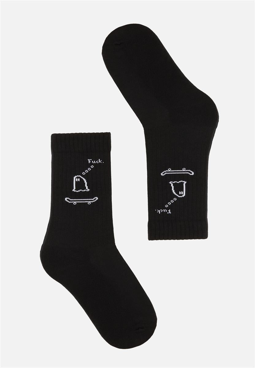 Socken BERGENIA GEISTERFAHRER von RECOLUTION in black, bestehend aus: 73% Baumwolle (Bio) & 20% Polyamid (Recycled) & 5% Polyamid & 2% Elasthan