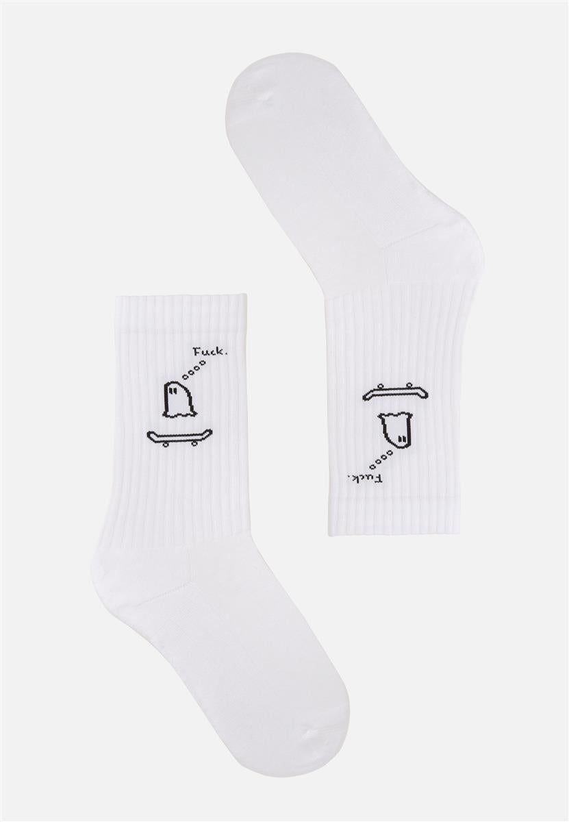Socken BERGENIA GEISTERFAHRER von RECOLUTION in white, bestehend aus: 73% Baumwolle (Bio) & 20% Polyamid (Recycled) & 5% Polyamid & 2% Elasthan