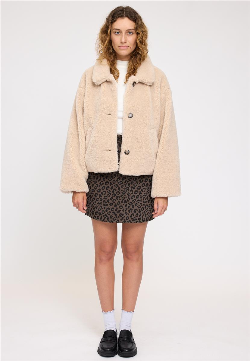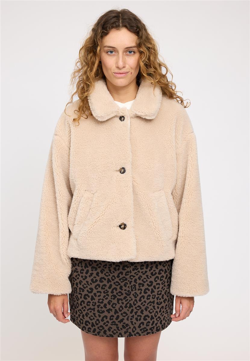 Die Faux-Fur Button Jacket von Mazine vereint luxuriösen Kunstfell-Charme mit moderner, verkürzter Silhouette. Klassischer Umlegekragen, vegane Hornknöpfe und lockere Passform verleihen stilvolle Eleganz, während das weiche Kunstfell aus 100 % recyceltem Polyester besonders angenehm zu tragen ist. Oberstoff und Futter bestehen ebenfalls aus recycelten Fasern – ressourcenschonend und verantwortungsvoll gefertigt. GRS‑zertifiziert für transparente Materialherkunft und faire Produktionsstandards. Pflegehinweis: separat und von links waschen, abnehmbare Teile entfernen, Verschlüsse schließen, nur Feinwaschmittel verwenden; nach dem Trocknen sanft bürsten.