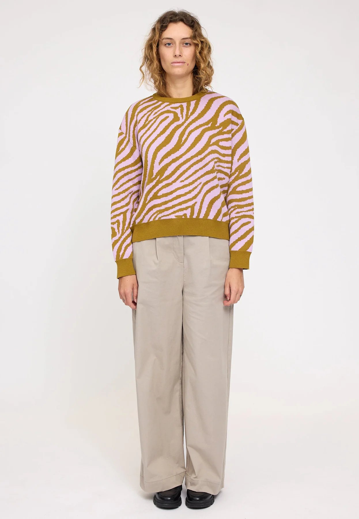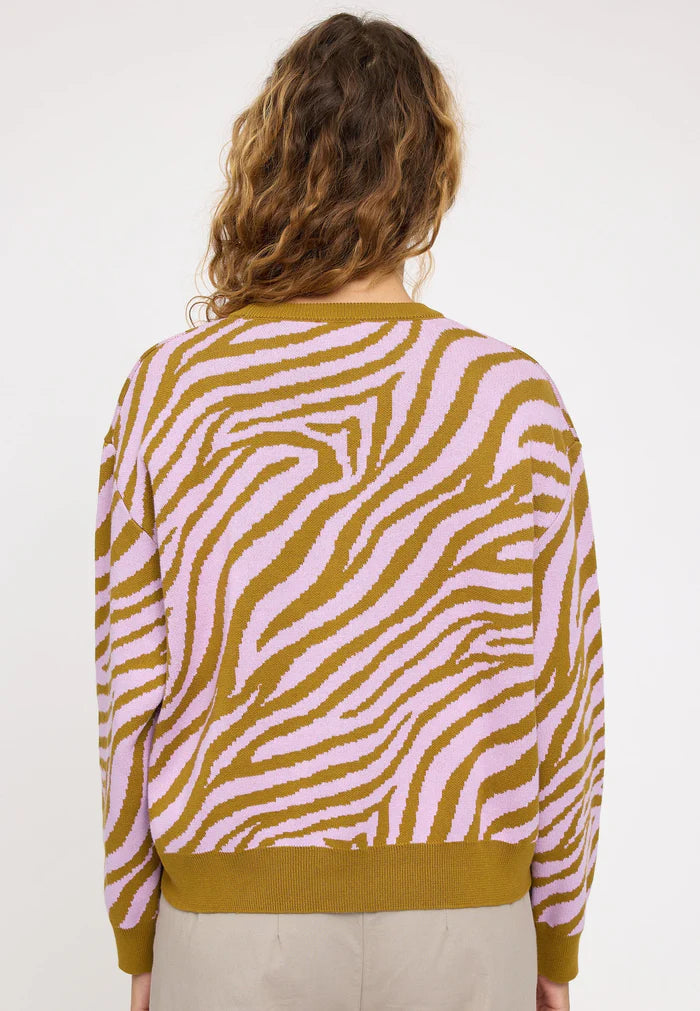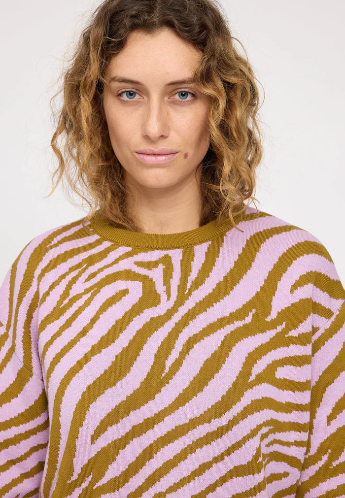 MAZINE Zebra Jacquard Knit Jumper golden olive/orchid