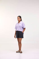 Das ARNIKO Cricket Polo T-Shirt Cropped in Violet Blue besteht aus 100 % Baumwolle in strukturierter Waffelqualität.
