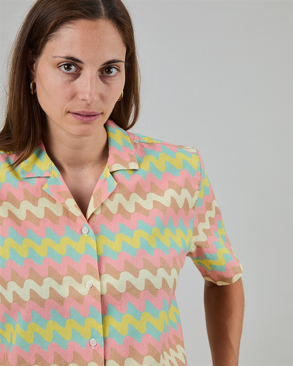 BRAVA Pastel Wavy Stripes Aloha Blouse