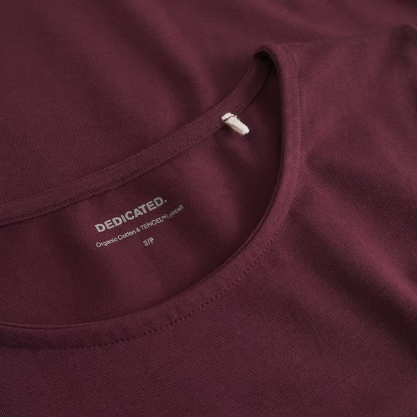 Top Salmis Fig Red von DEDICATED gefertigt aus: 49% Baumwolle (Bio), 46% TENCEL™ Lyocell, 5% Elasthan.