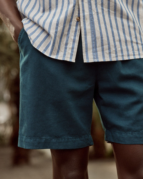 Die CHEVRE Shorts von FAGUO überzeugen mit einem sportlich-lässigen Design und hohem Tragekomfort für warme Tage. Der entspannte Schnitt und der elastische Bund sorgen für viel Bewegungsfreiheit und machen die Bermudashorts zum idealen Begleiter in der Stadt oder im Urlaub. Ein Reißverschluss, eine Leistentasche hinten sowie das cleane Finish unterstreichen den funktionalen Look. Gefertigt aus einer leichten, strapazierfähigen Materialmischung aus 44 % Lyocell, 42 % Bio-Baumwolle und 14 % Leinen, bieten die Shorts eine angenehm weiche, atmungsaktive Qualität mit sommerlichem Tragegefühl. Vielseitig kombinierbar mit T-Shirts oder leichten Hemden sind sie ein unkompliziertes Essential für die Saison.