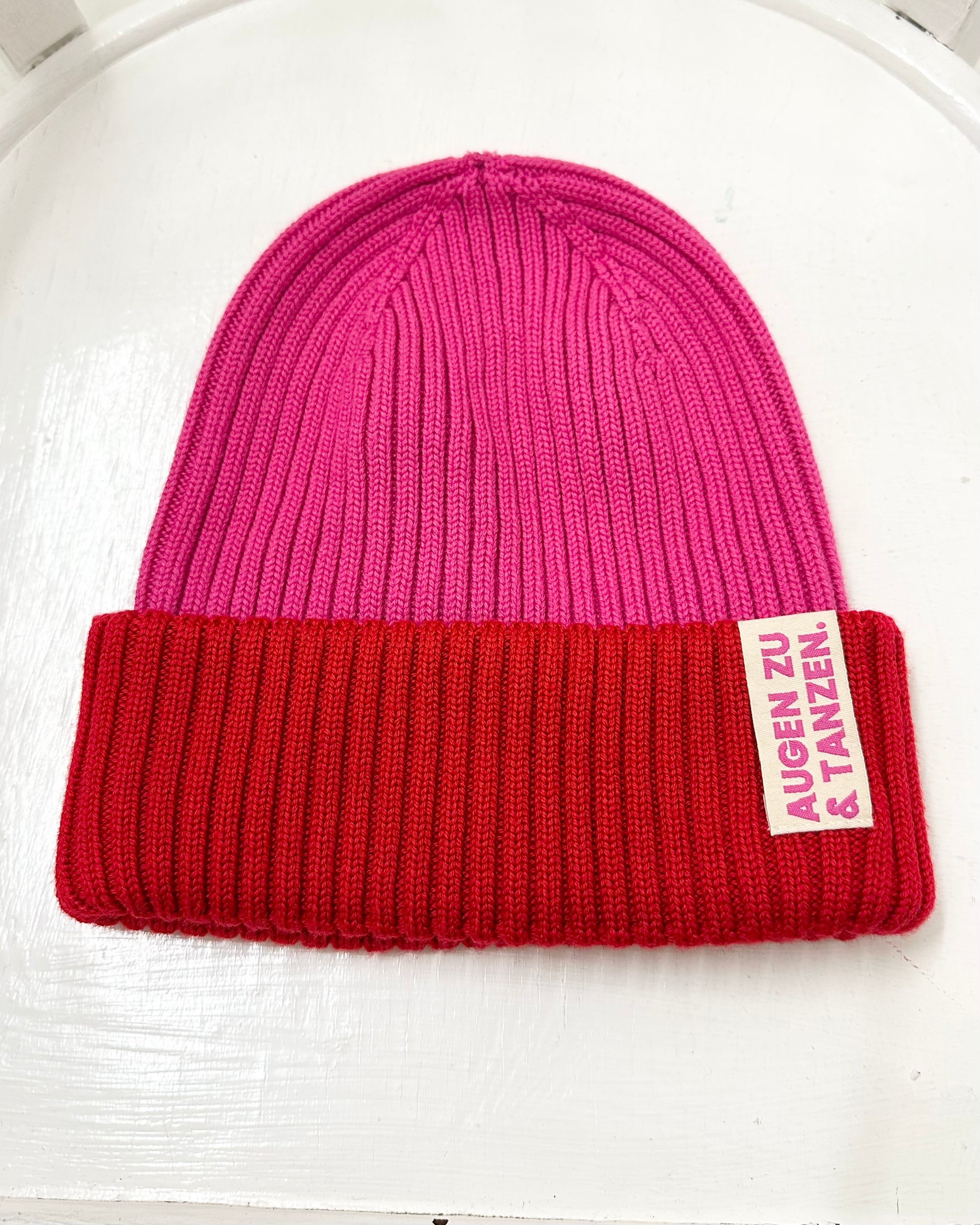 KIWI STORIES Strickmütze Block Rot Pink Augen zu